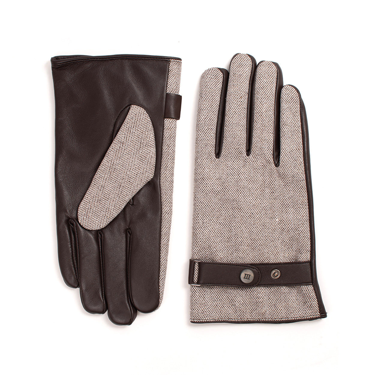 The FIORE gloves by TRESANTI combine comfort with a stylish look. Thanks to the wool/polyester blend, they feel wonderfully warm, and the herringbone pattern adds a modern twist. The FIORE is available in black and light brown. Pair with the matching pocket square, tie, and cap for a complete look.