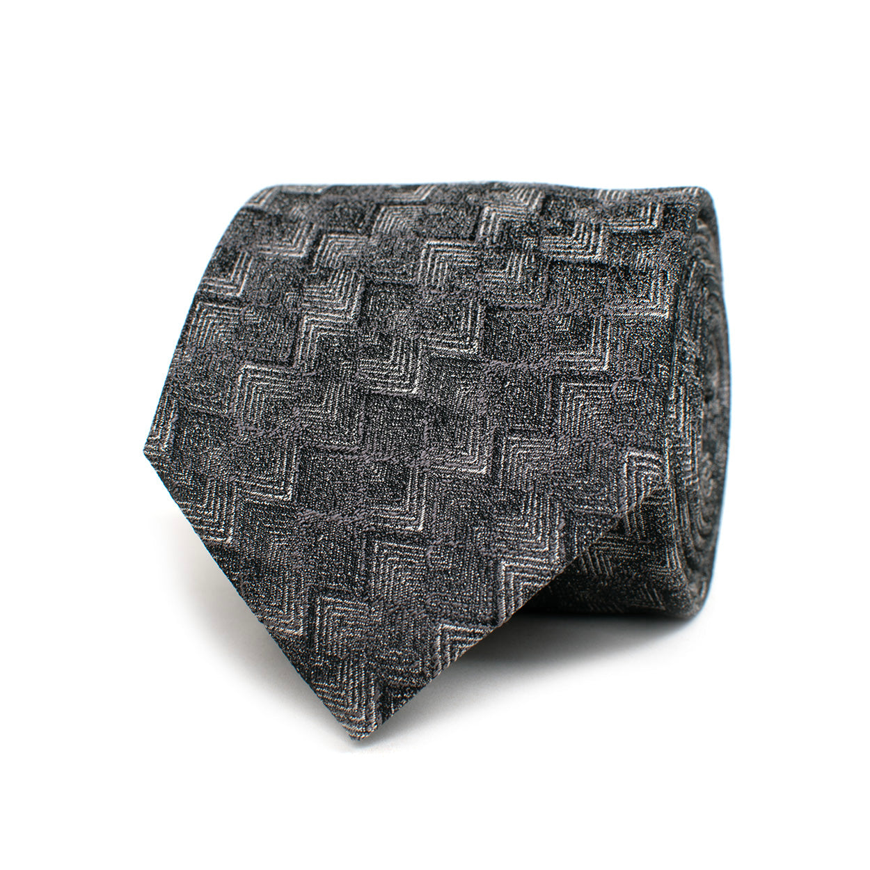 FOSSILO | Silk Tie with Zigzag Motif | Grey