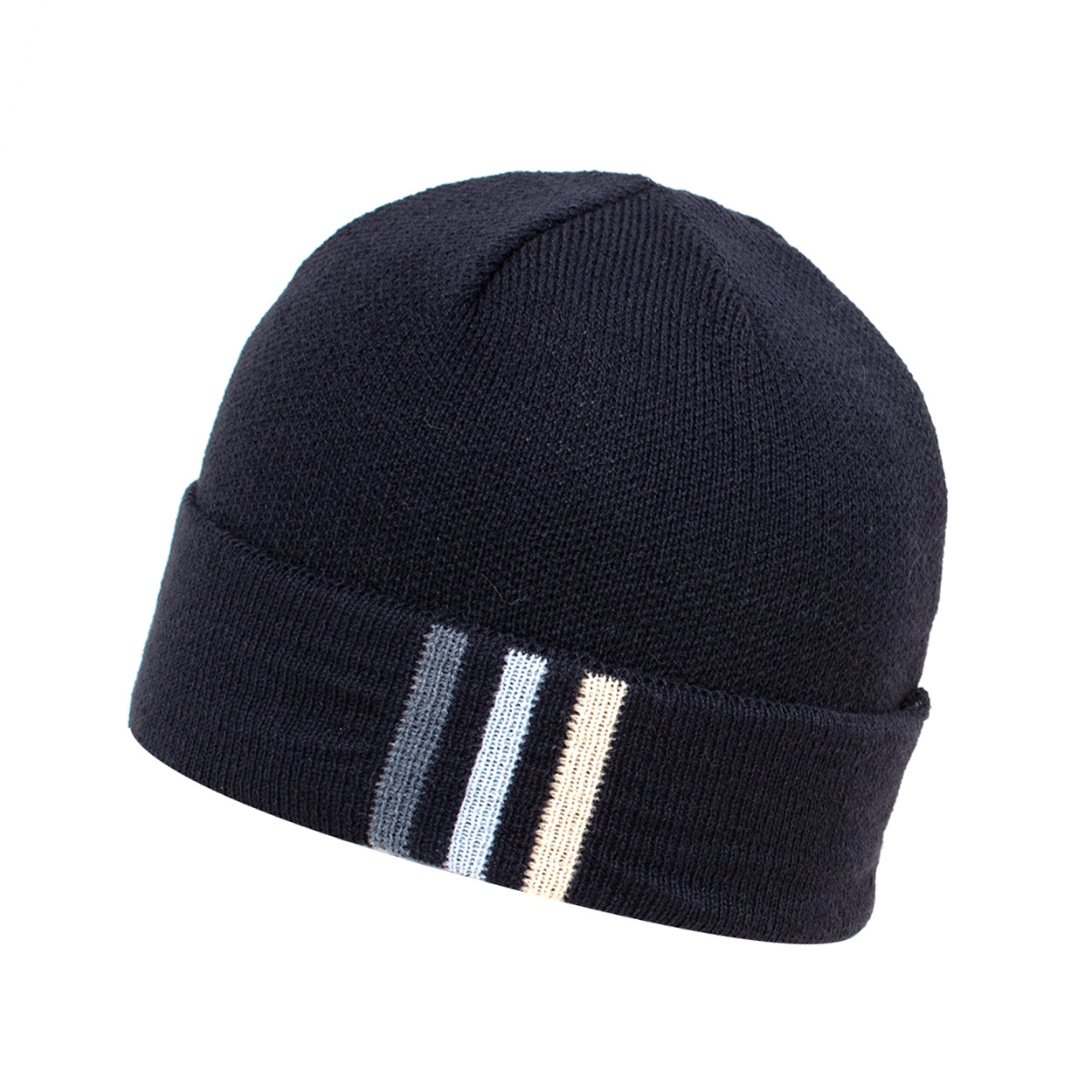 FRANKO | Fine-Knit Beanie with Striped Detail | Blue