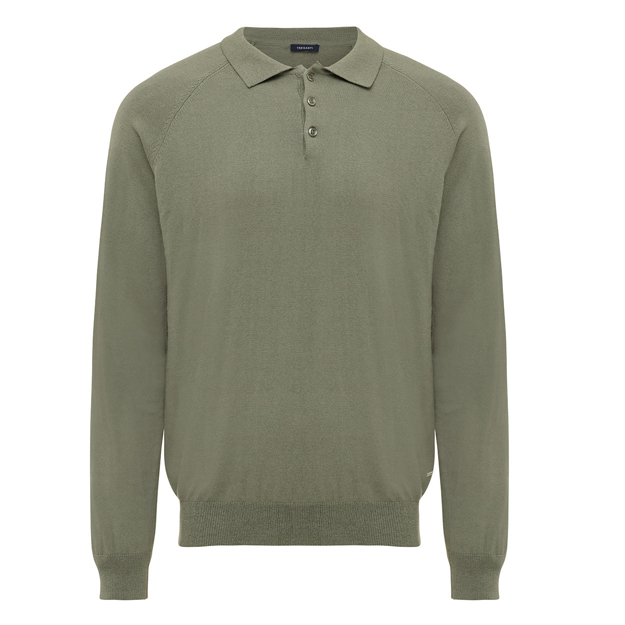 This beautiful long sleeve polo from TRESANTI is a quality polo with a cotton and cashmere blend. This gives it a soft feel. The DAGOBERTO has a regular fit and a polo collar. Available in navy and light green.