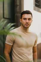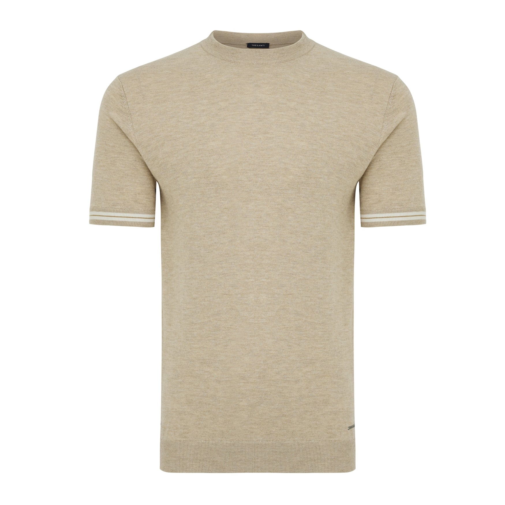 GABRIELE | Knitted T-shirt with striped cuffs | Beige
