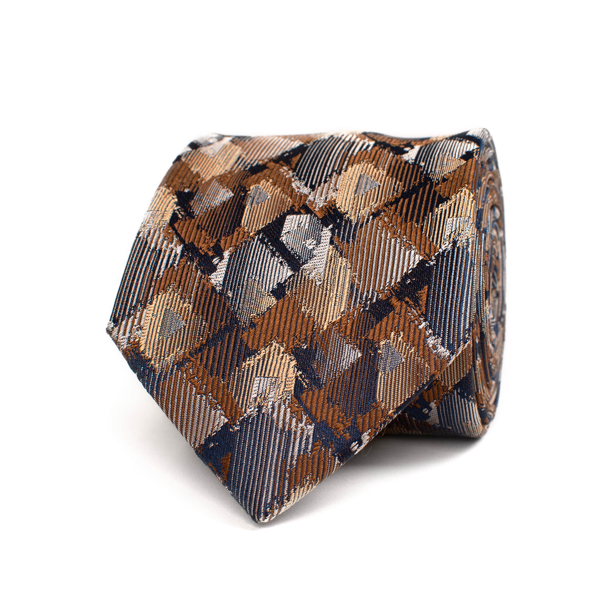 FILOGIO | Silk Tie with Retro Geometric Pattern | Light brown