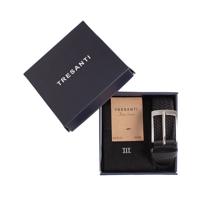Surprise someone with the ZENO matching gift set from Tresanti. The gift box contains our best selling elastic braided belt with a matching pair of bamboo socks. The gift box is available in beige, taupe, brown, cognac, navy, petrol, green and black. The perfect gift to give or receive.