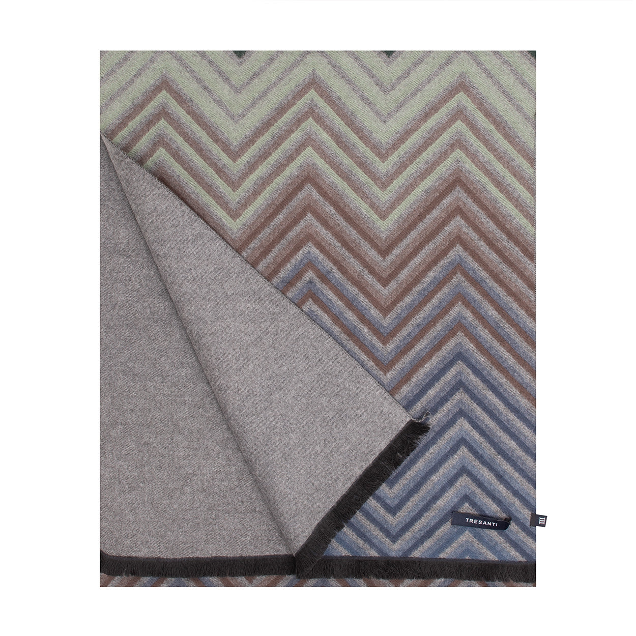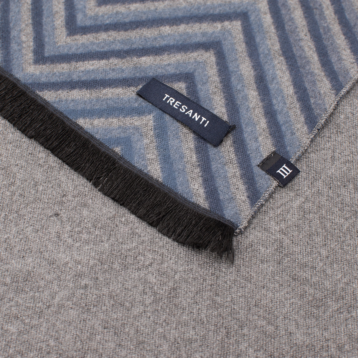 The DEMOCRITO scarf has a faded herringbone pattern. The TRESANTI scarf provides warmth and comfort for cold days. DEMOCRITO is available in multi brown and blue.
