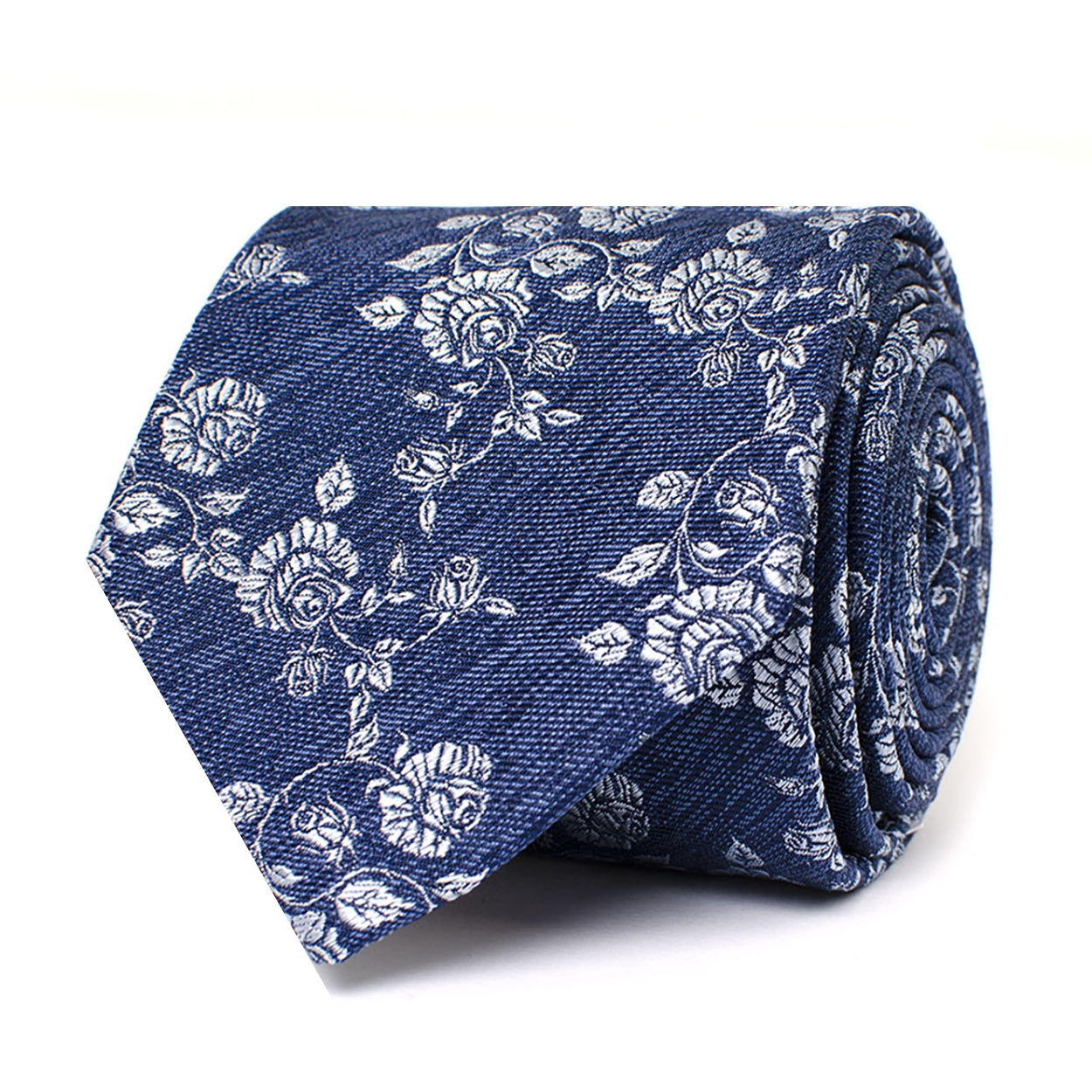 TRESANTI's ALES tie is made from denim-look silk. Finished with light flowers and a subtle sheen, it stands out from the ordinary. The ALES is available in blue.