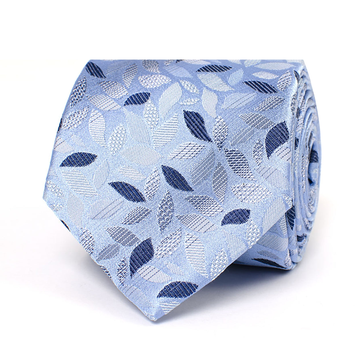 ANGELO I Silk tie with leaves | Sky blue