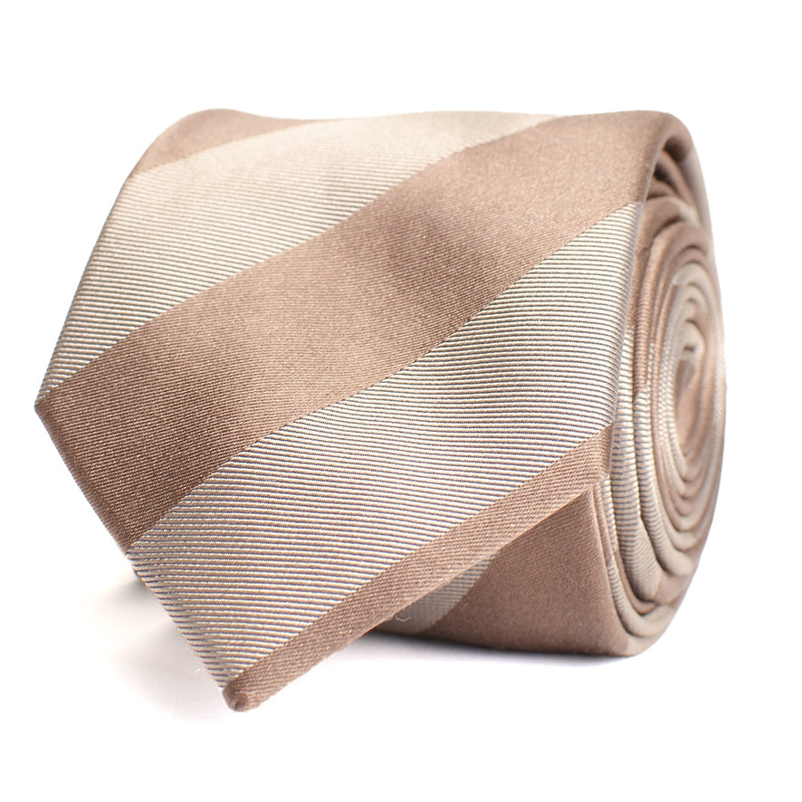 TRESANTI's eye-catching BASSANO tie features a bold striped pattern. This eye-catching tie is made from 100% silk for a luxurious feel. It is the perfect choice for a wedding suit or business attire. The BASSANO is available in grey, brown and navy.
