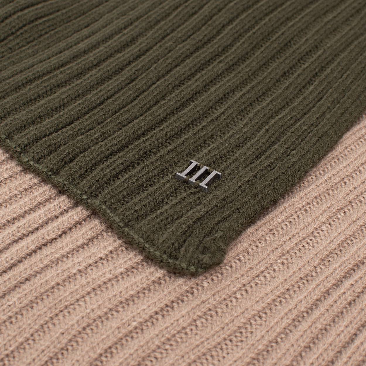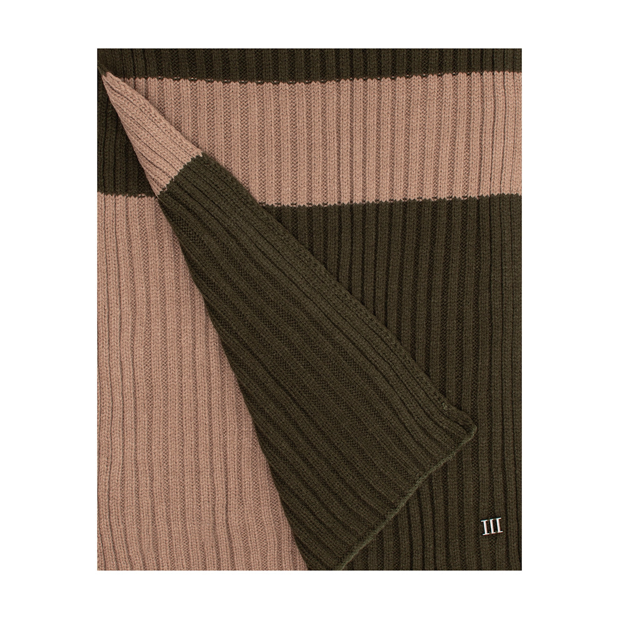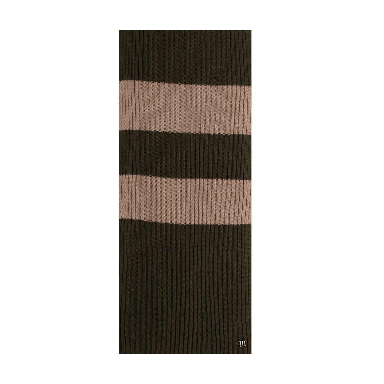 The striped BEATO scarf has a knitted structure. The TRESANTI scarf is 100% acrylic. BEATO is available in multi and brown.