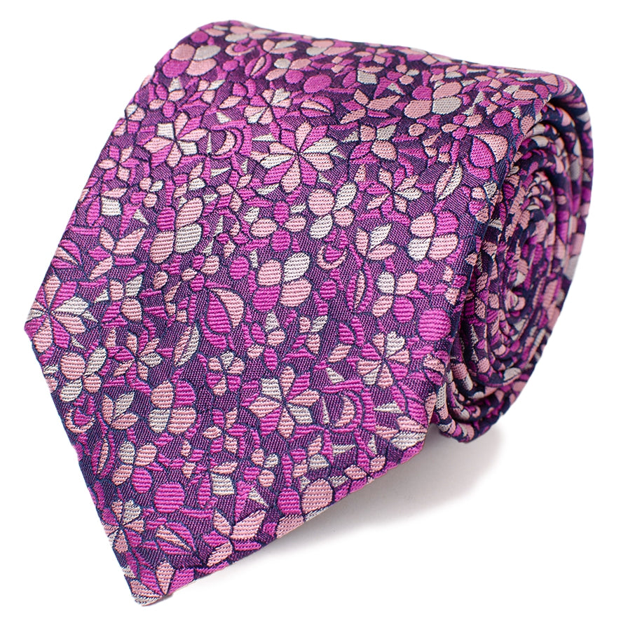 BRIGHT | Silk tie with drawn floral motif | Purple