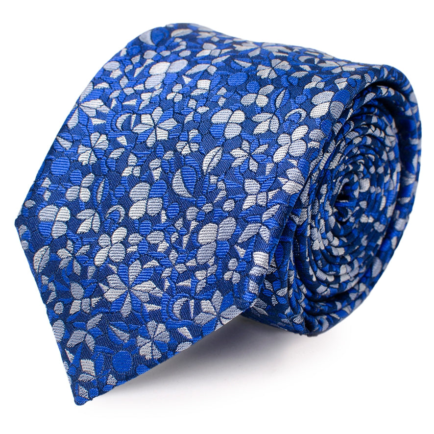 BRIGHT | Silk tie with drawn floral motif | Royal blue