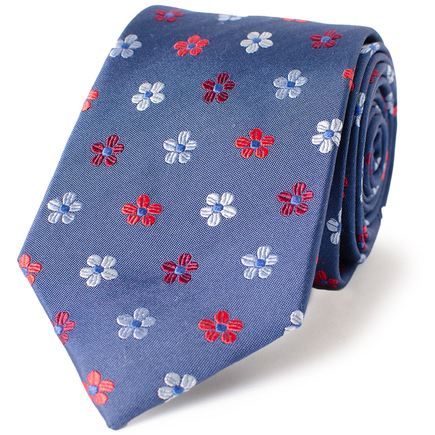 Brighten up your outfit with TRESANTI's BRON tie made from 100% silk. The tie features a subtle floral pattern in a variety of colours against a denim blue background. The BRON tie is available in red, purple, pink and blue.