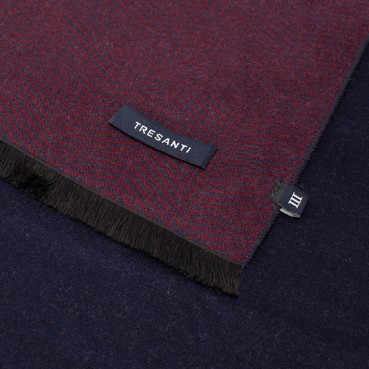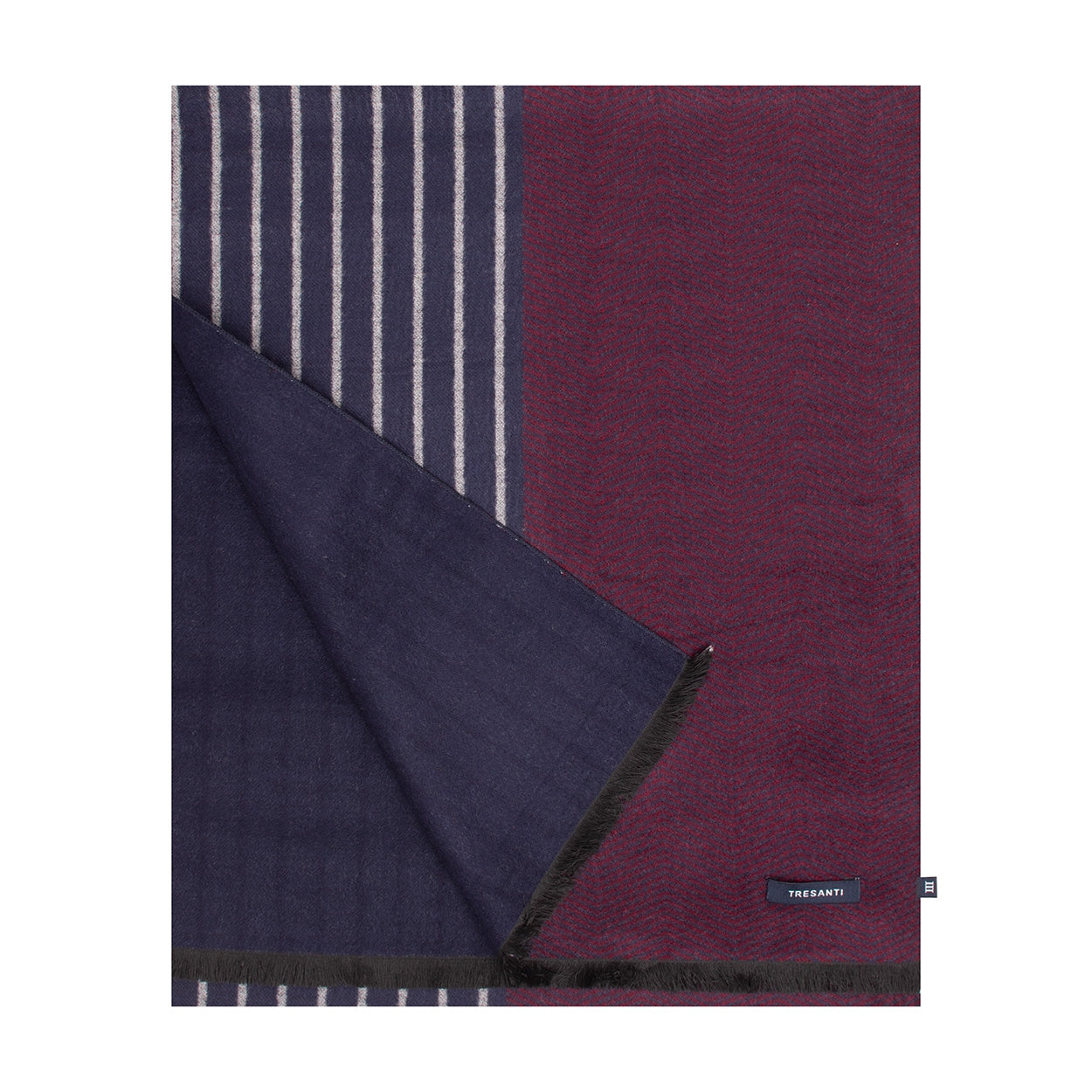 Keep the cold at bay with the stylish BUSTO scarf from TRESANTI. One half of the scarf has a subtle herringbone pattern, while the other half has a striped pattern. BUSTO is available in multi, blue and green.