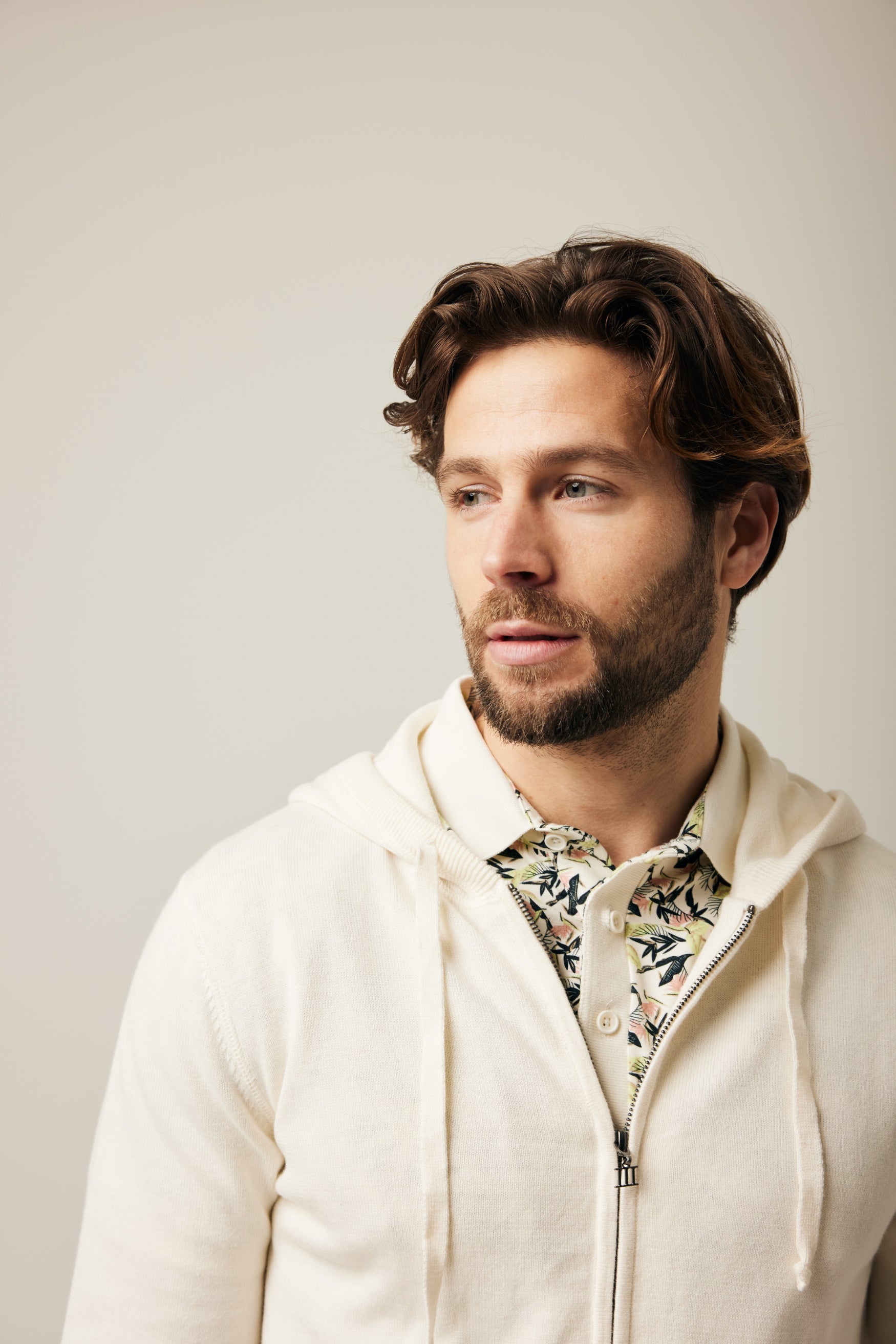 Your new favourite men's pullover this spring is the CARLO by TRESANTI. A plain knit cardigan with a full zip and hood. The cardigan is made from a blend of cotton and cashmere for a luxurious soft feel. The CARLO comes in ivory and taupe.