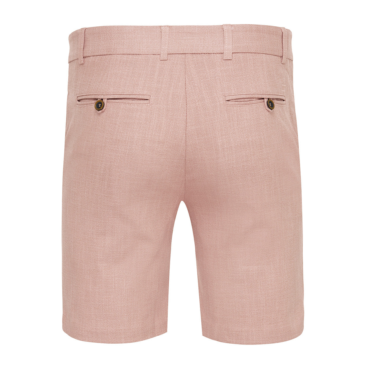 ELDO is a timeless short with a linen look. The shorts are made from ramie with cotton. Ramie has the same properties as linen, but is more exclusive with more sheen. It is an airy, breathable fabric that is also incredibly comfortable. Wear it with a colourful shirt or casually with a polo shirt for a summer look. ELDO comes in ivory, light pink, dark green and navy.