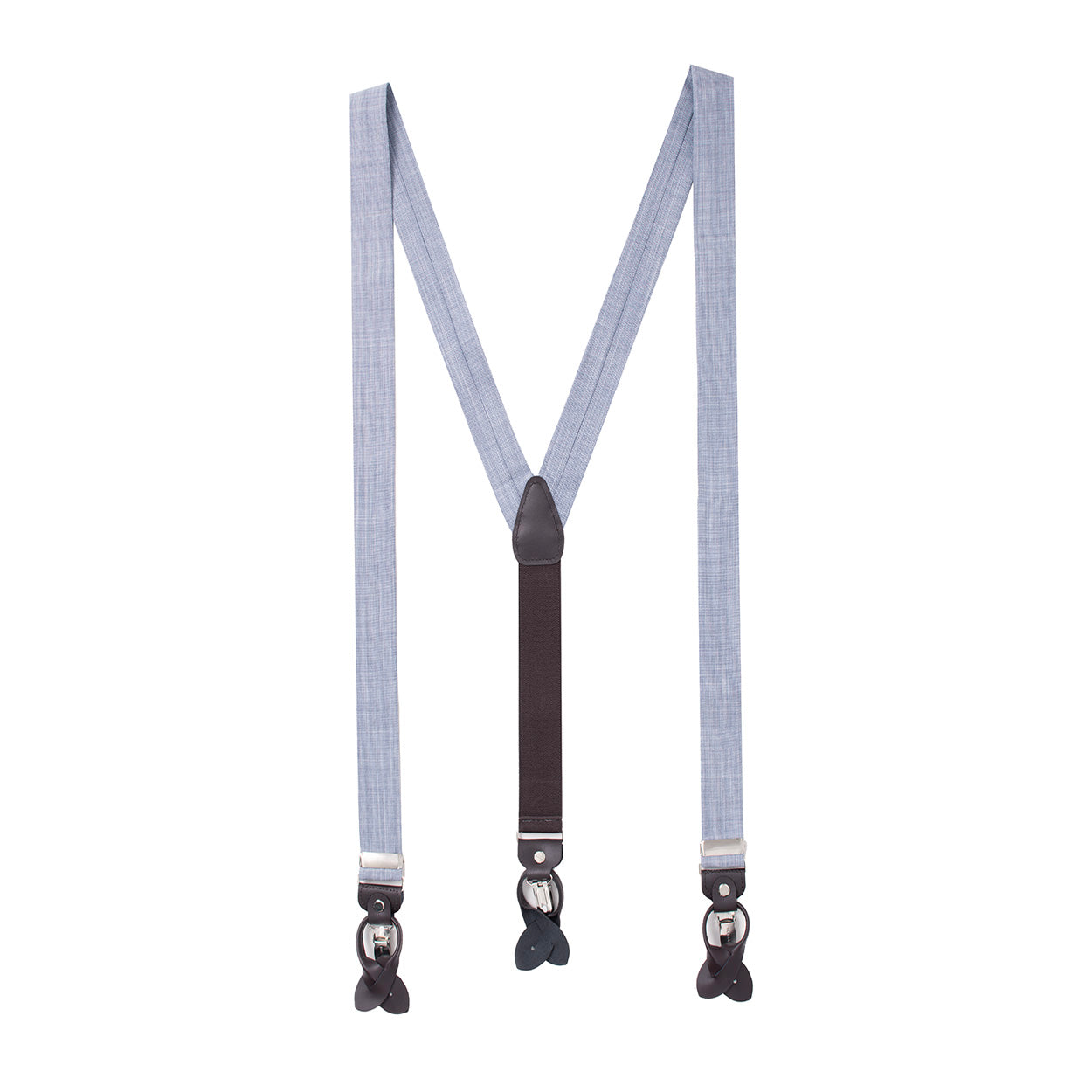 Give your outfit a refined look with the ESON solid braces from TRESANTI. The straps are made of polyester and finished with brown leather details. Thanks to the sturdy clips, the suspenders can be easily attached to trousers. The coarse texture of the fabric gives them a linen-like appearance. Pair them with the matching flat cap, bow tie, pocket square, and tie to complete your outfit for any special occasion. The ESON is available in off-white, blue, and turquoise.