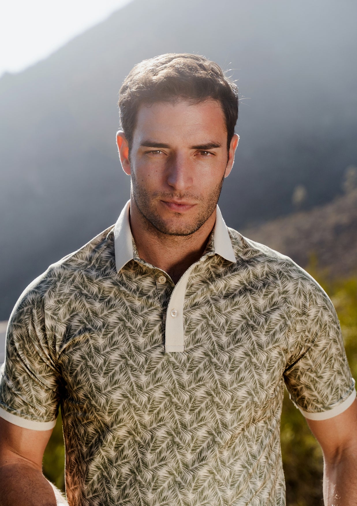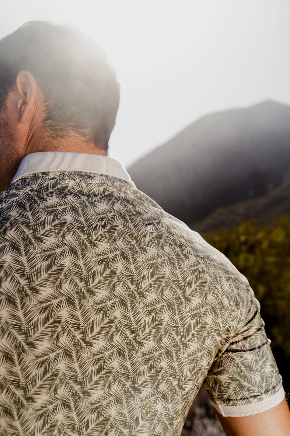 The EVERANE polo with a palm leaf print from TRESANTI feels like a T-shirt but has the quality of a polo. The cotton-elastane blend provides ultimate comfort. Featuring Tresanti’s unique palm leaf print with a contrasting colored collar. The EVERANE is available in green with beige.