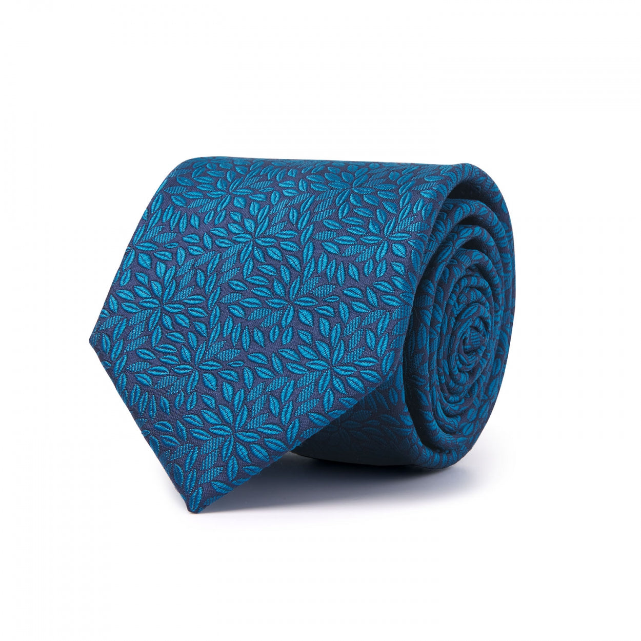 STARCK | Woven silk tie with leaves | Dark blue