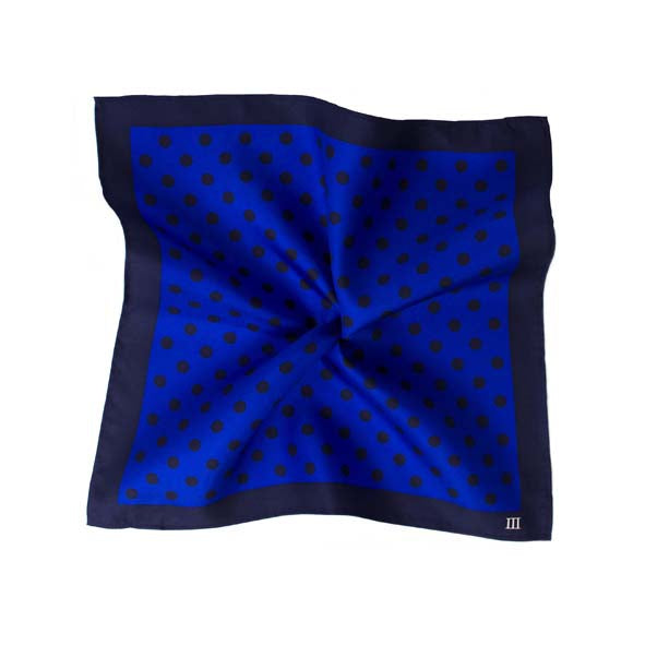 YARO I Silk blue pocket square with navy polka dots | Blue