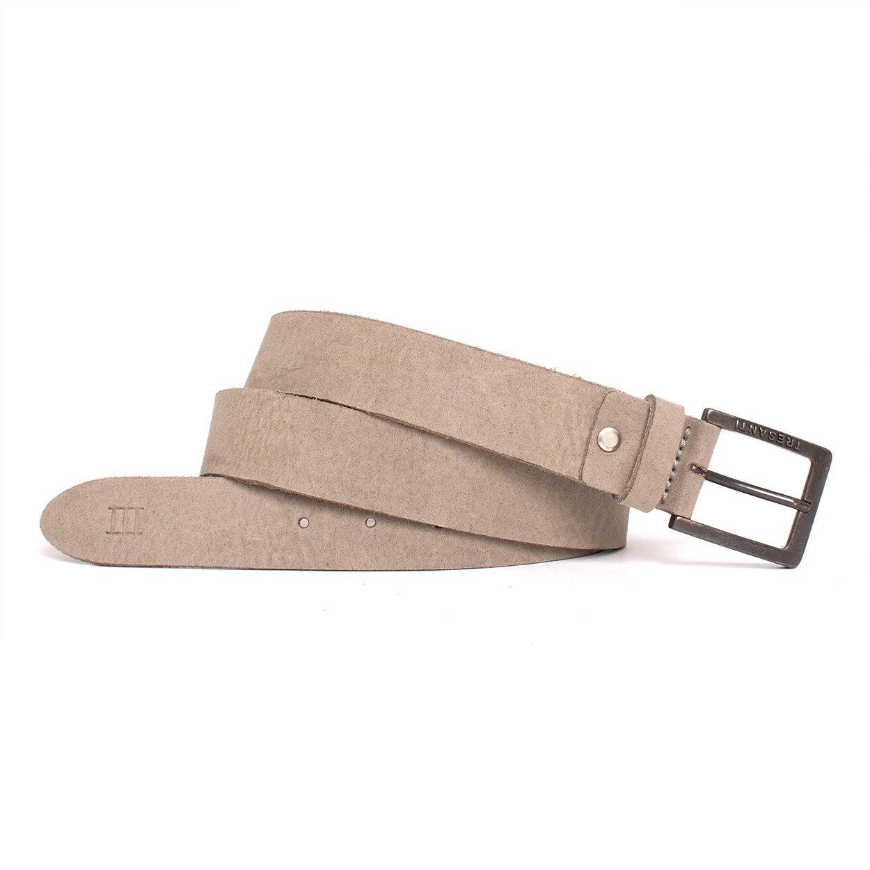 Discover the high quality 100% leather men's belts from TRESANTI. The ZANE nubuck leather belt is available in a range of colours and is fitted with a nickel metal buckle. A screw on the back of the buckle allows you to easily adjust the belt to your desired size. Not sure about the right size? You can measure the length of the belt by measuring the distance between the buckle and the centre hole of the belt.