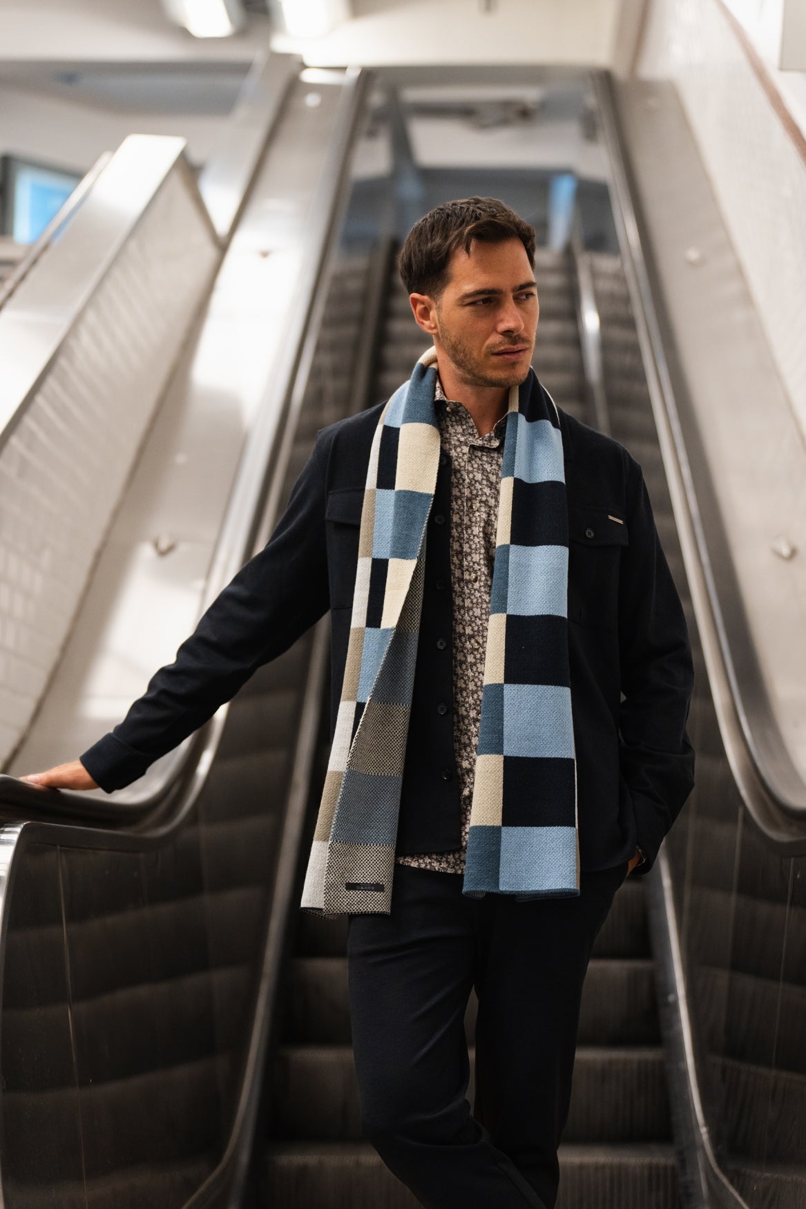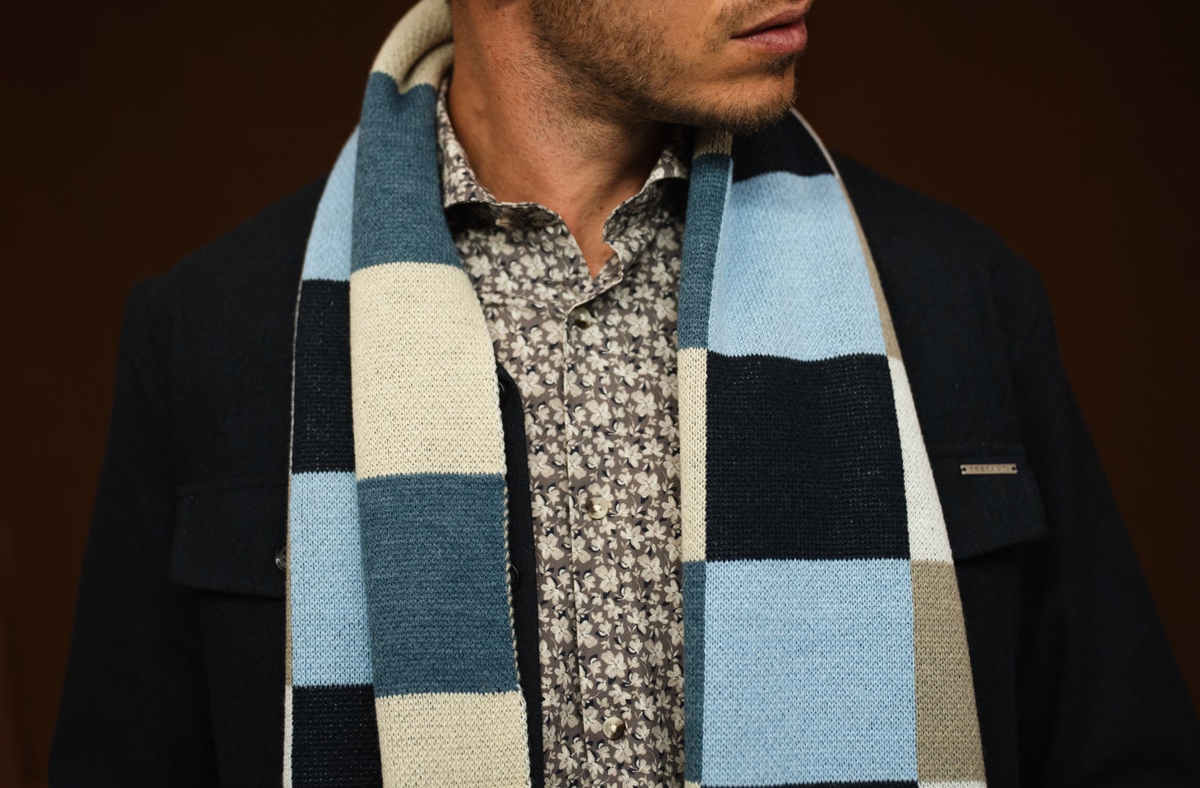 FRANKO | Knitted Scarf with Colored Blocks | Blue
