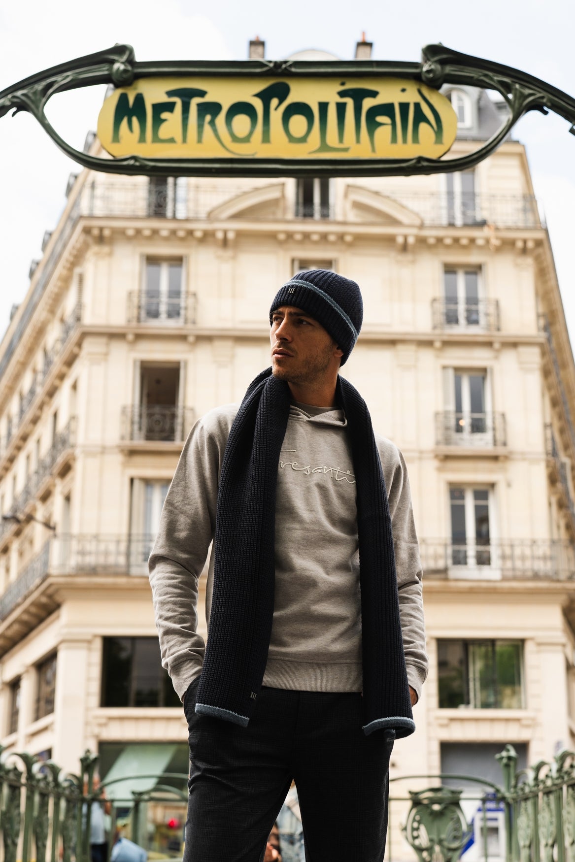 The FULSI scarf by TRESANTI combines warmth with style. The knitted design feels soft and cozy during cold days. The contrasting edge adds a subtle twist. Perfect worn alone or with the matching FULSI beanie. Available in beige, gray, dark brown, and navy.