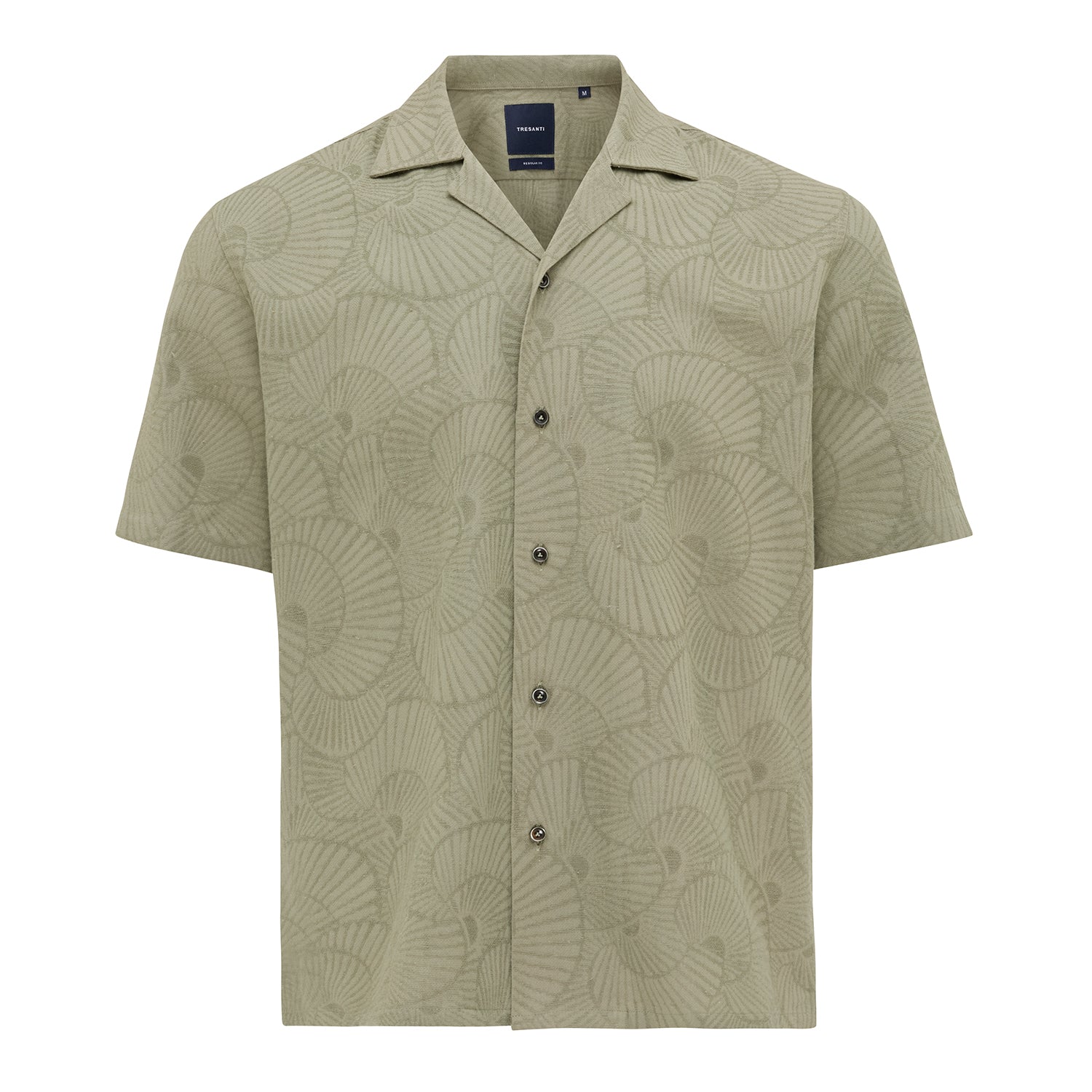 The ELIA short-sleeve shirt from TRESANTI is the must-have of this season. The shirt has a regular fit and a pattern of organic palm leaves. The cotton-linen blend provides a summery, airy structure. The ELIA is available in white and dark green.