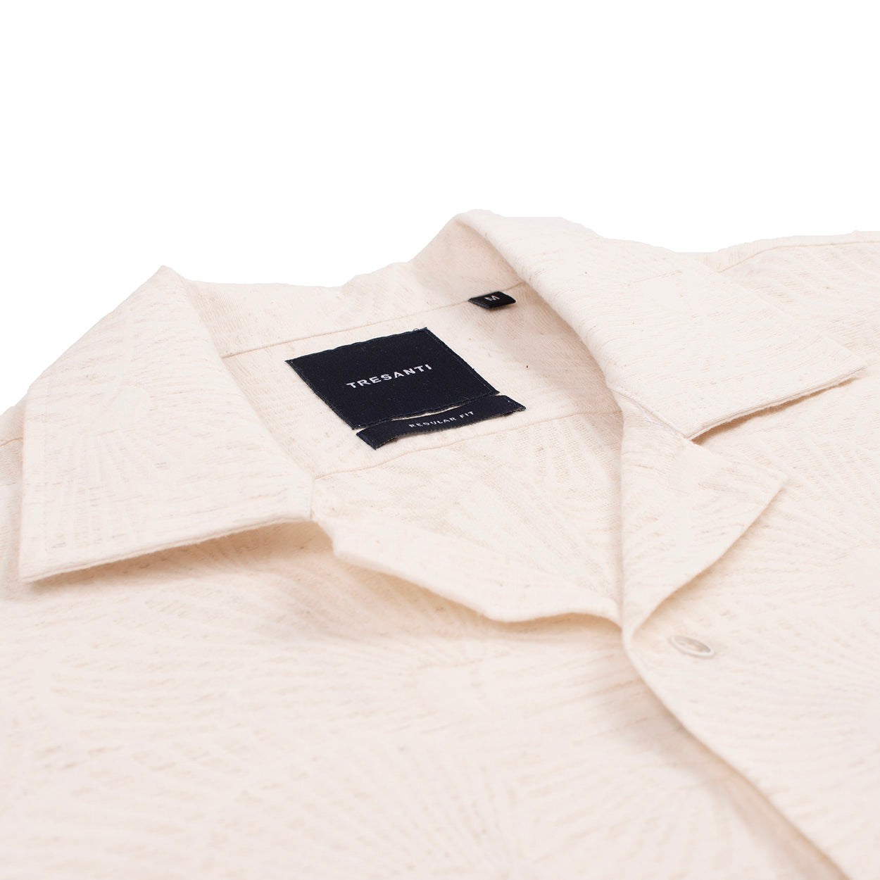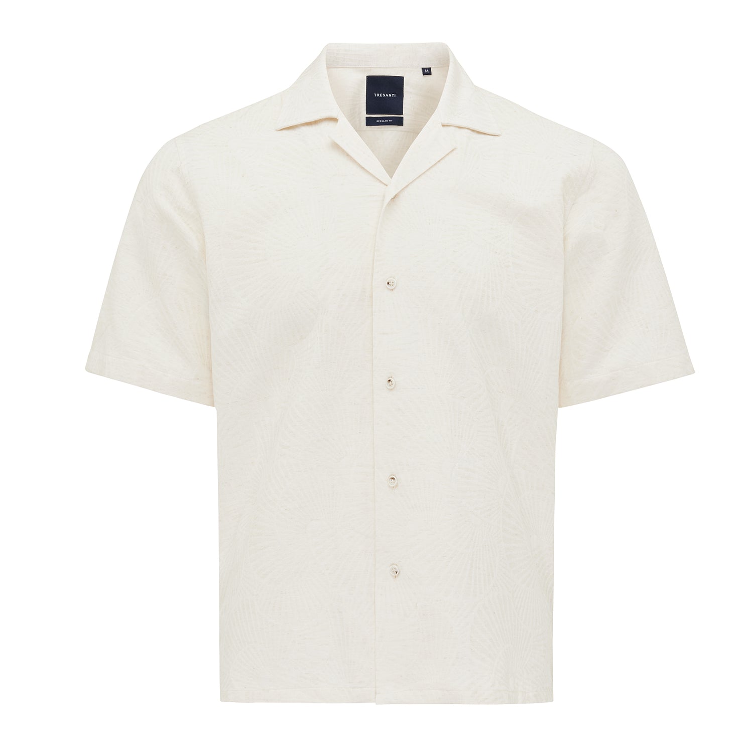 The ELIA short-sleeve shirt from TRESANTI is the must-have of this season. The shirt has a regular fit and a pattern of organic palm leaves. The cotton-linen blend provides a summery, airy structure. The ELIA is available in white and dark green.