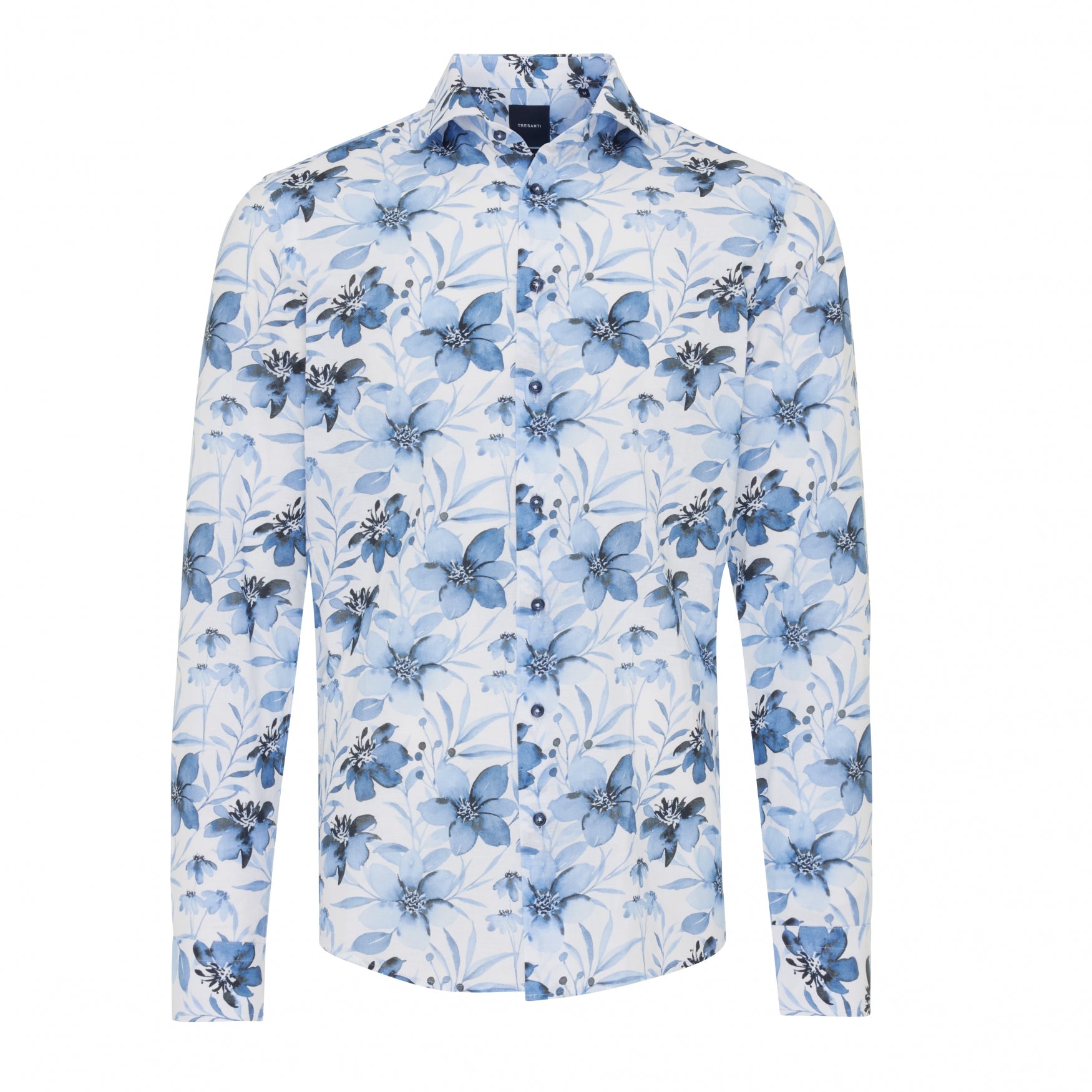 Get summer-ready with the CASILDA linen-blend shirt from TRESANTI. The dark blue watercolor flowers add a fresh, seasonal touch to your everyday outfit. The CASILDA is available in blue.