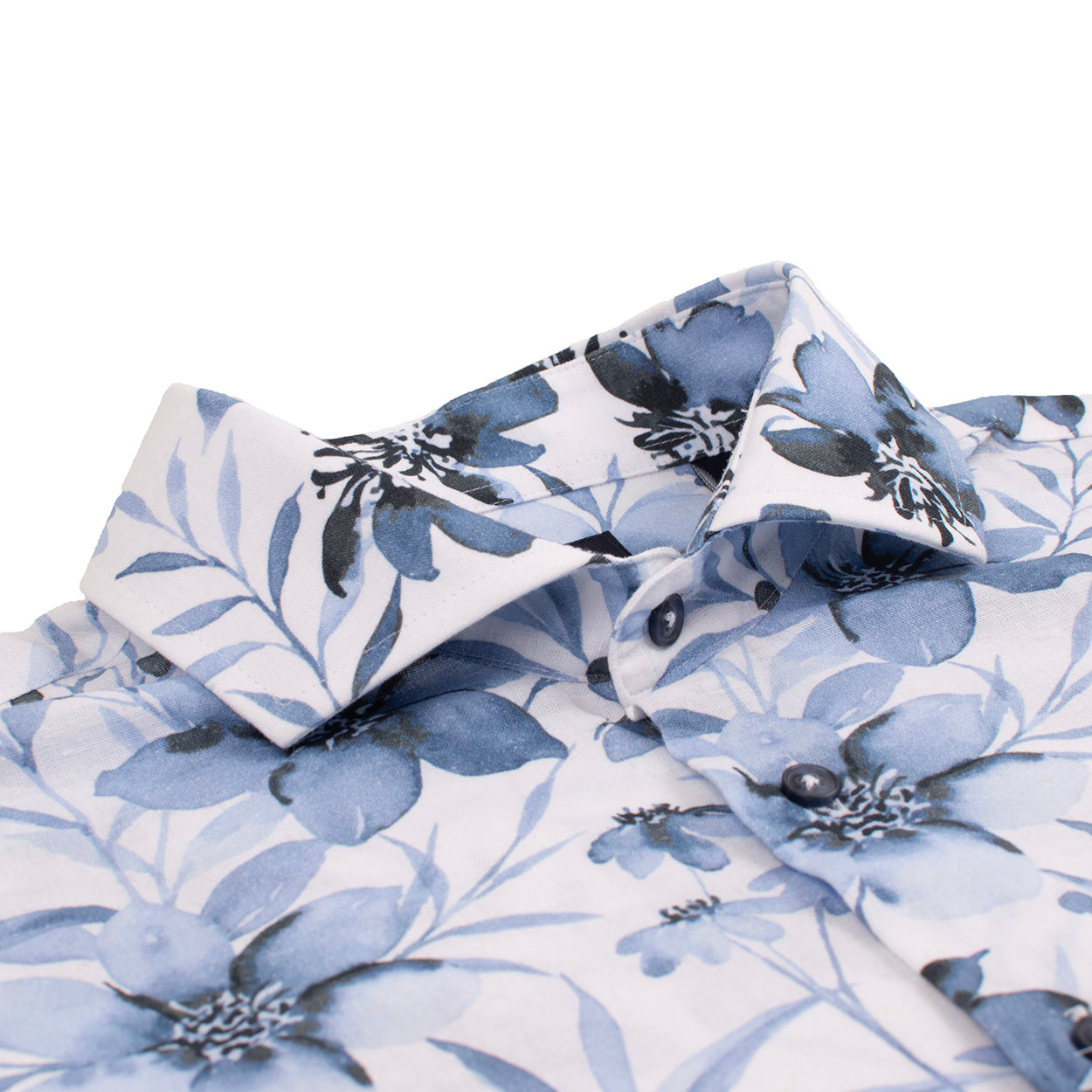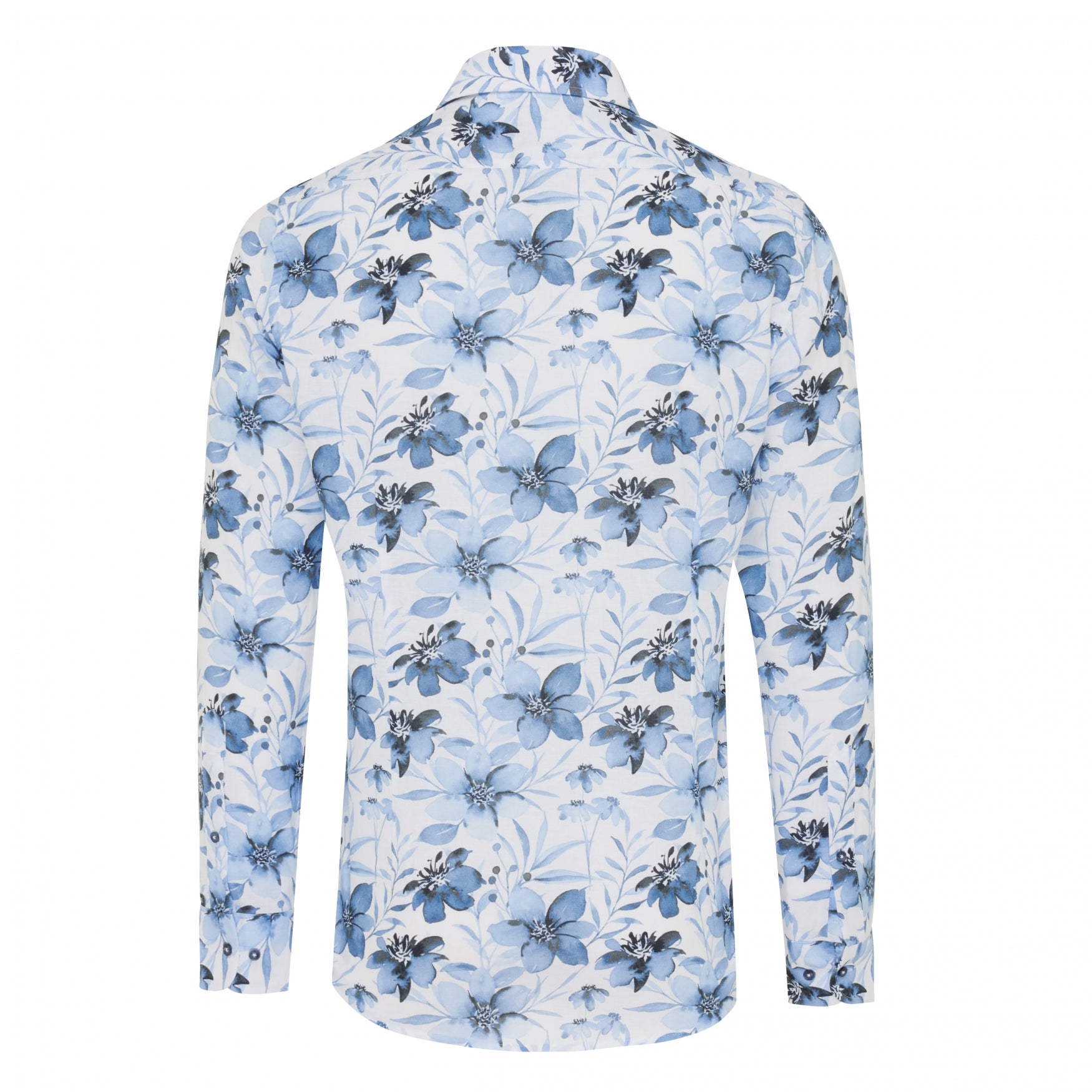 CASILDA | Linen-Blend Shirt with Large Watercolor Flowers | Blue
