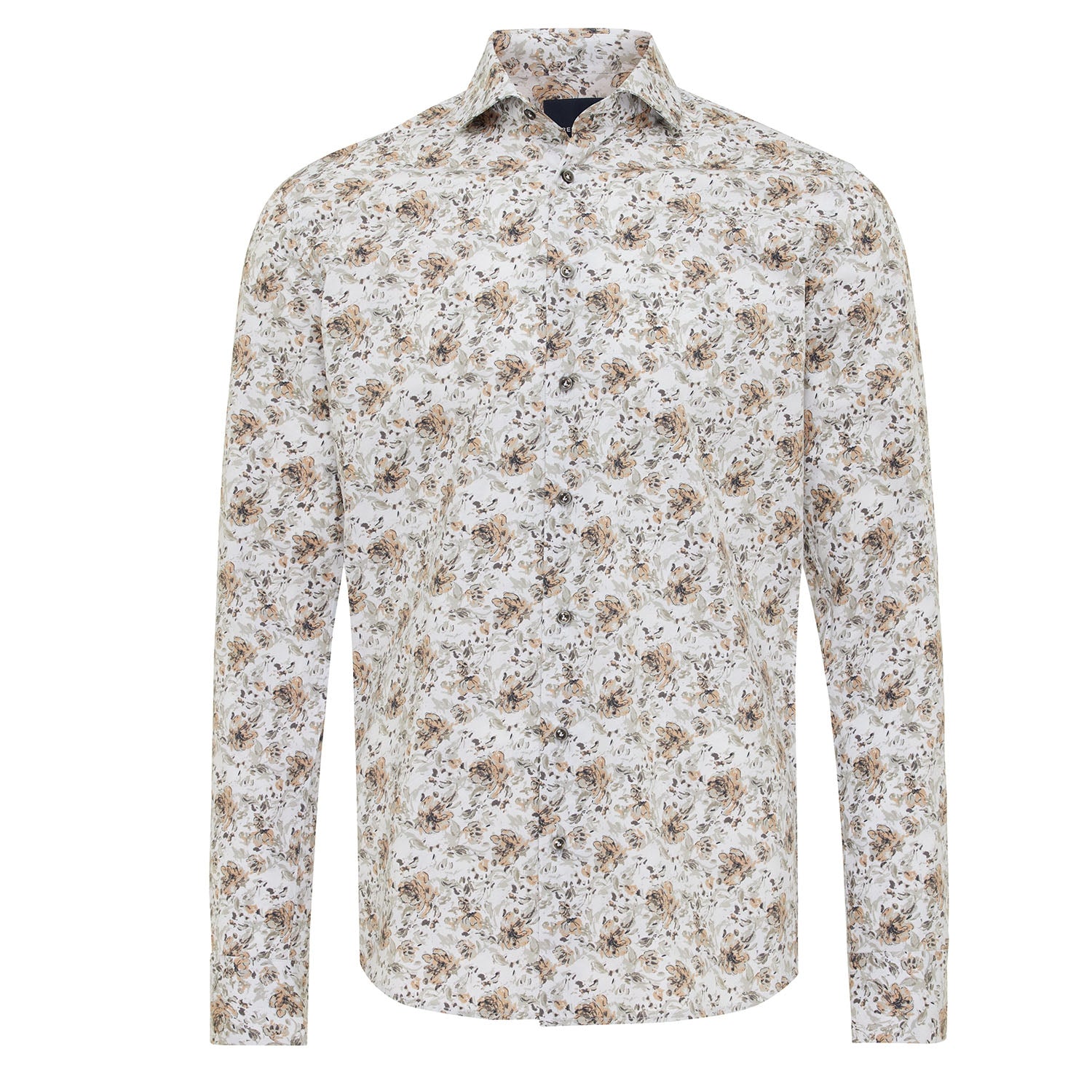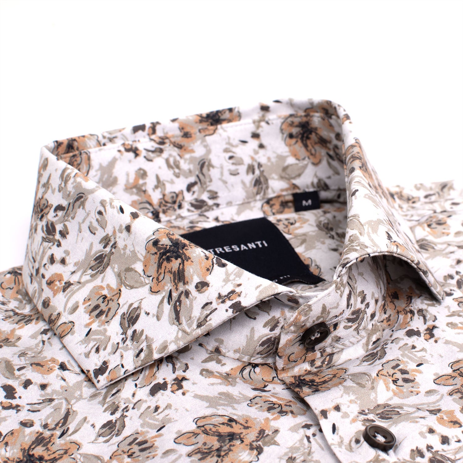 TRESANTI'S DONATELLO is a neutral shirt with a unique touch. The shirt contains colors such as white, beige and gray which are incorporated into an abstract floral pattern. The shirt is made from a blend of cotton and elastane for a comfortable fit.