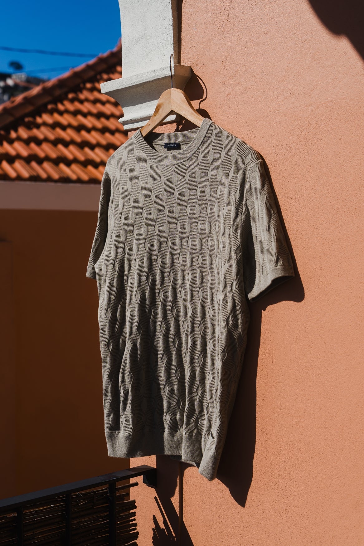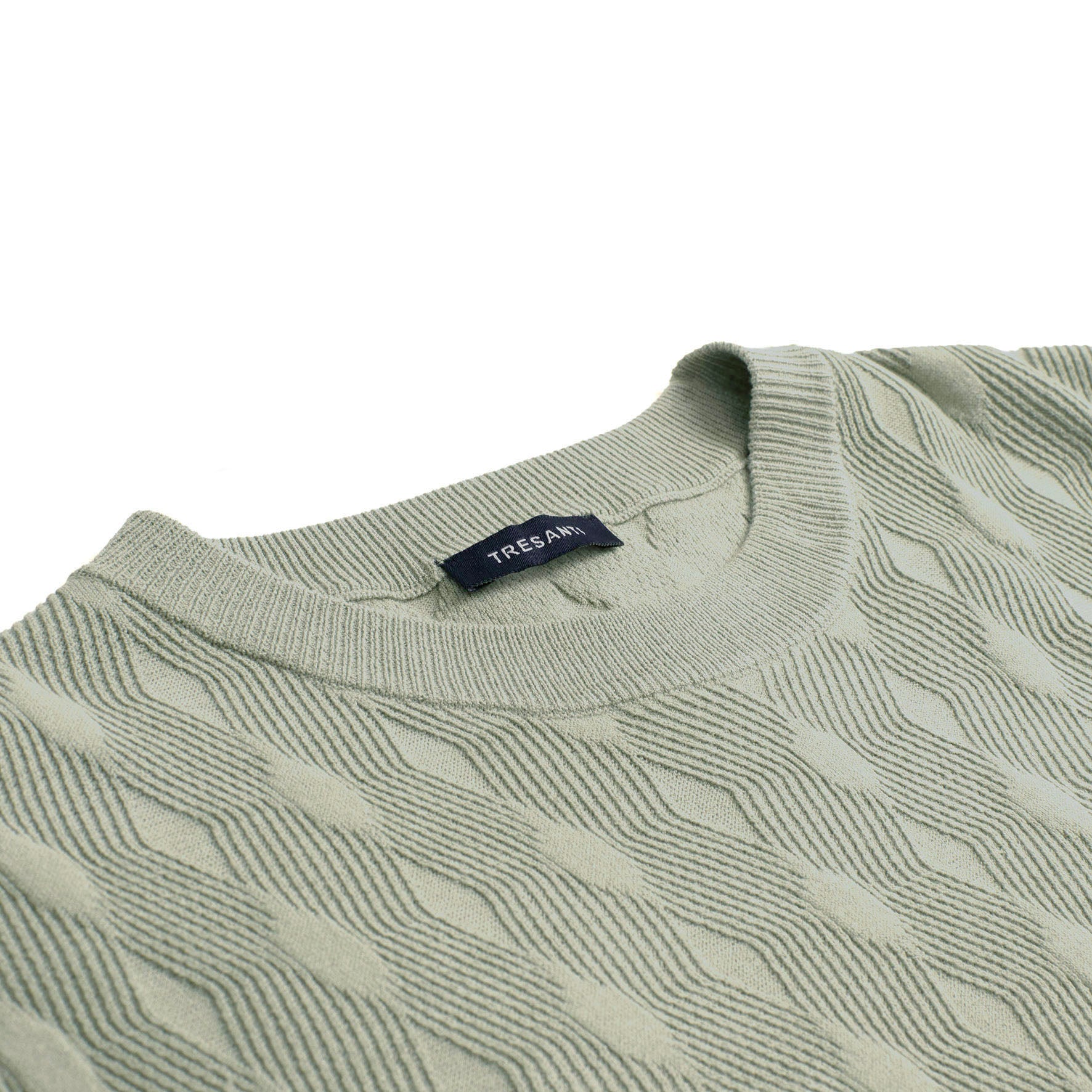The GIANALDO fine-knit short-sleeved jumper from TRESANTI is a versatile essential for any wardrobe. The T-shirt has a round neckline and an all-over checked pattern, giving it a modern look. The jumper is made from a blend with EcoVero, a sustainable and environmentally friendly alternative to viscose. Perfect to combine with the GIORGINO overshirt. The GIANALDO knit is available in off-white, navy and light green.