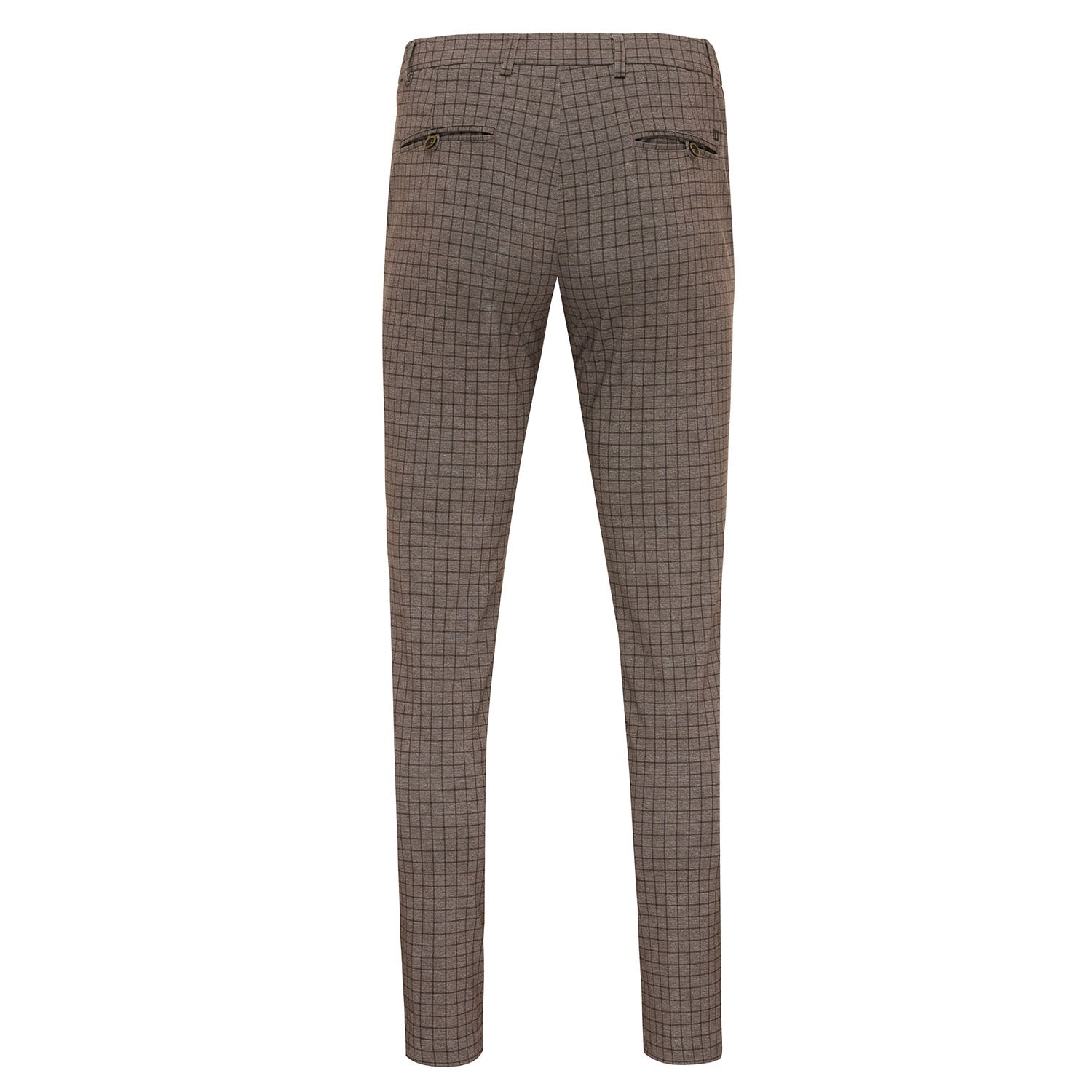 Complete your outfit with the DEMETRICO trousers, a real eye-catcher for the winter. The trousers have a brown check pattern with side pockets and back pockets that close with a button. The combination of polyester and elastane makes the trousers very comfortable. DEMETRIO is available in light brown.