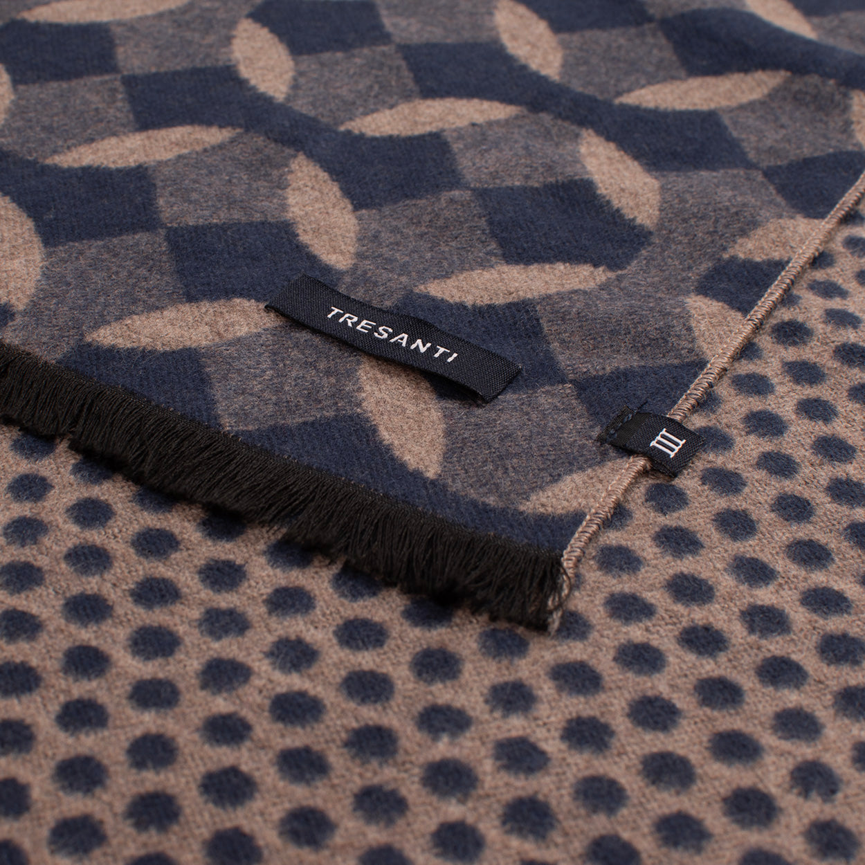 FELLO | Viscose Scarf with Rounded Check Pattern | Navy