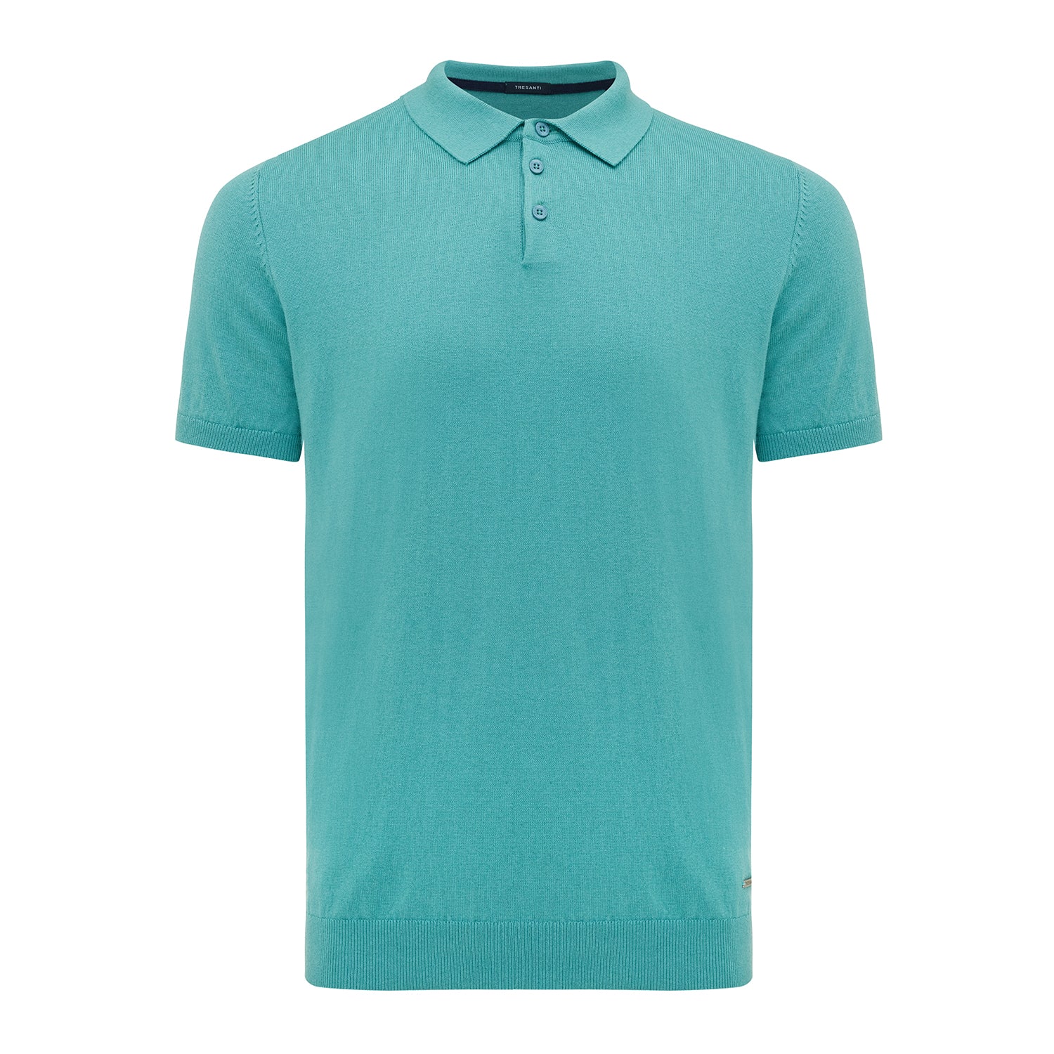 TREVOR | Basic gebreide polo katoen kasjmier | Turquoise