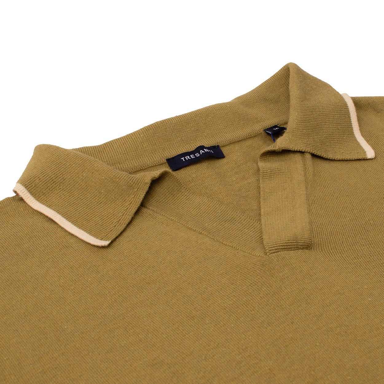 De ERSILIO gebreide polo met V hals van TRESANTI is passend voor iedere gelegenheid. De polo heeft een contrasterende streep op de kraag. Door de mix van katoen met zijde voelt deze polo zacht en luchtig aan. Zowel formeel als casual te dragen. De ERSILIO is verkrijgbaar in de kleuren gebroken wit, licht roze en groen.