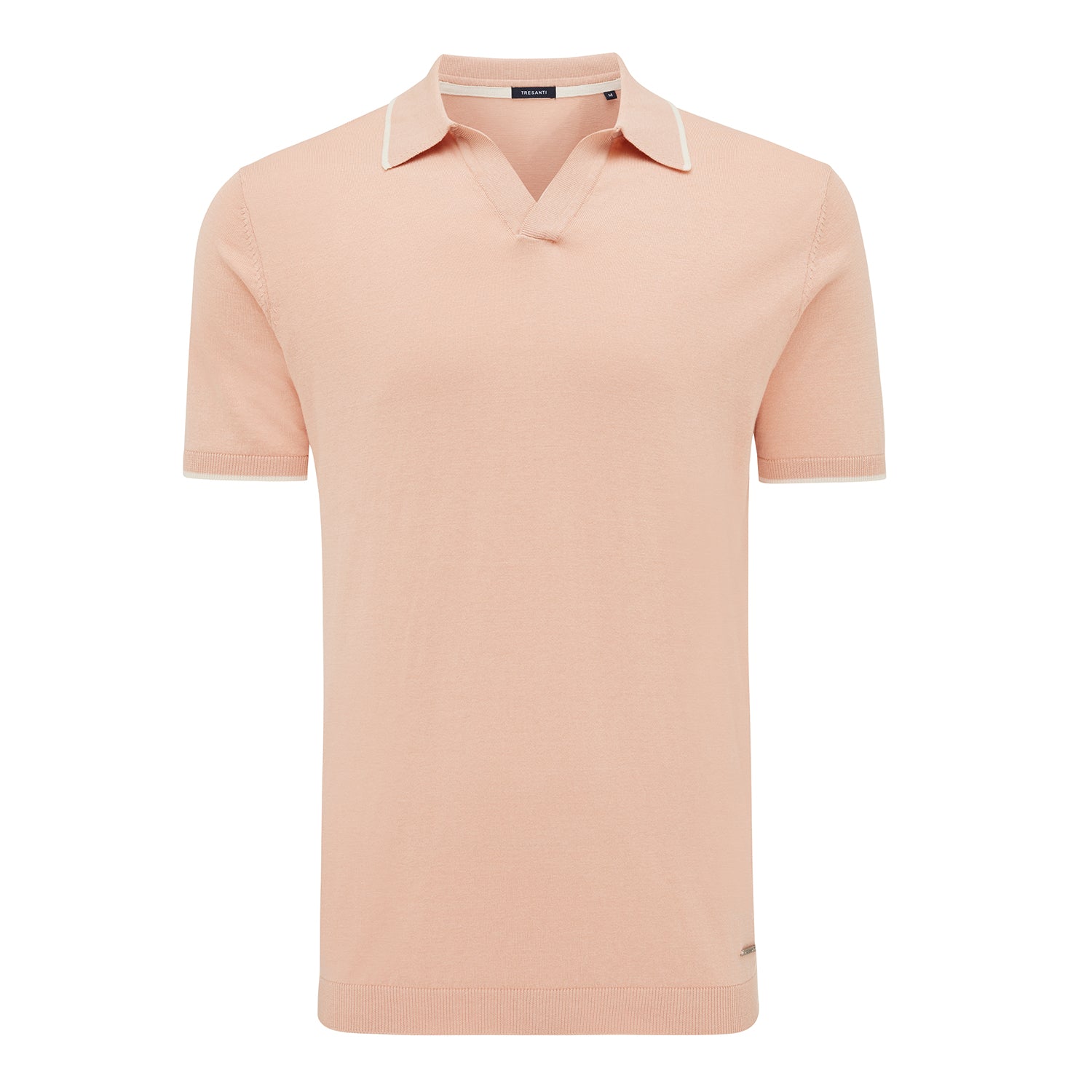 De ERSILIO gebreide polo met V hals van TRESANTI is passend voor iedere gelegenheid. De polo heeft een contrasterende streep op de kraag. Door de mix van katoen met zijde voelt deze polo zacht en luchtig aan. Zowel formeel als casual te dragen. De ERSILIO is verkrijgbaar in de kleuren gebroken wit, licht roze en groen.
