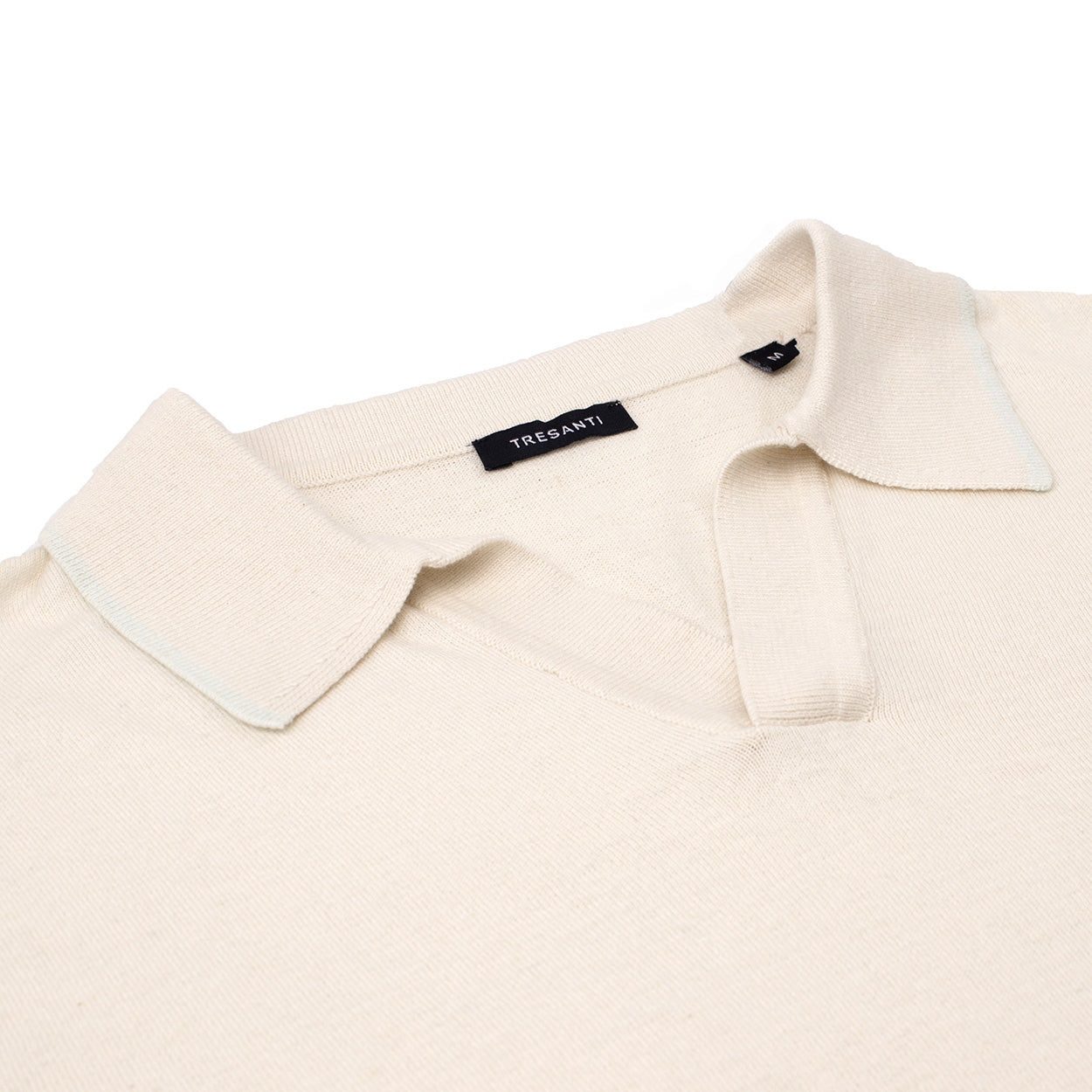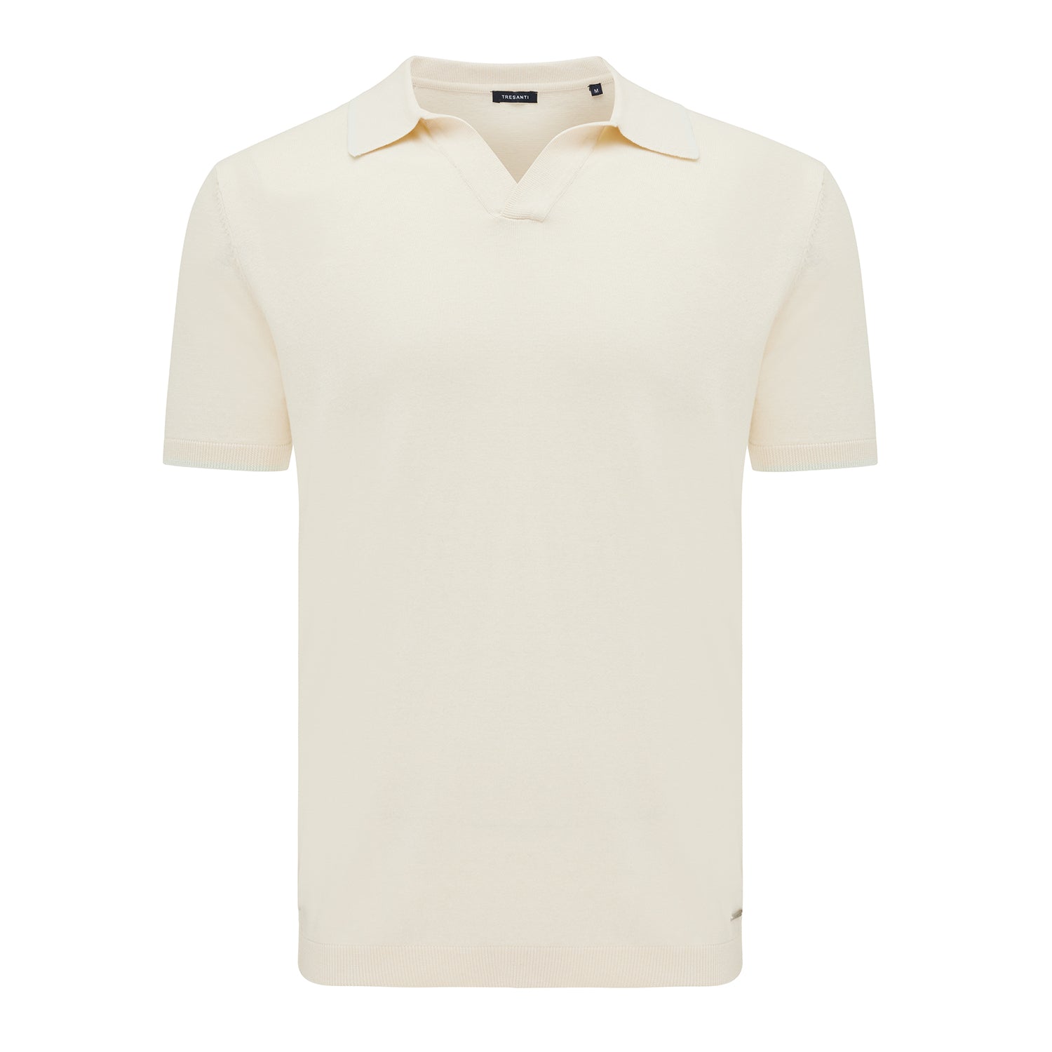 De ERSILIO gebreide polo met V hals van TRESANTI is passend voor iedere gelegenheid. De polo heeft een contrasterende streep op de kraag. Door de mix van katoen met zijde voelt deze polo zacht en luchtig aan. Zowel formeel als casual te dragen. De ERSILIO is verkrijgbaar in de kleuren gebroken wit, licht roze en groen.