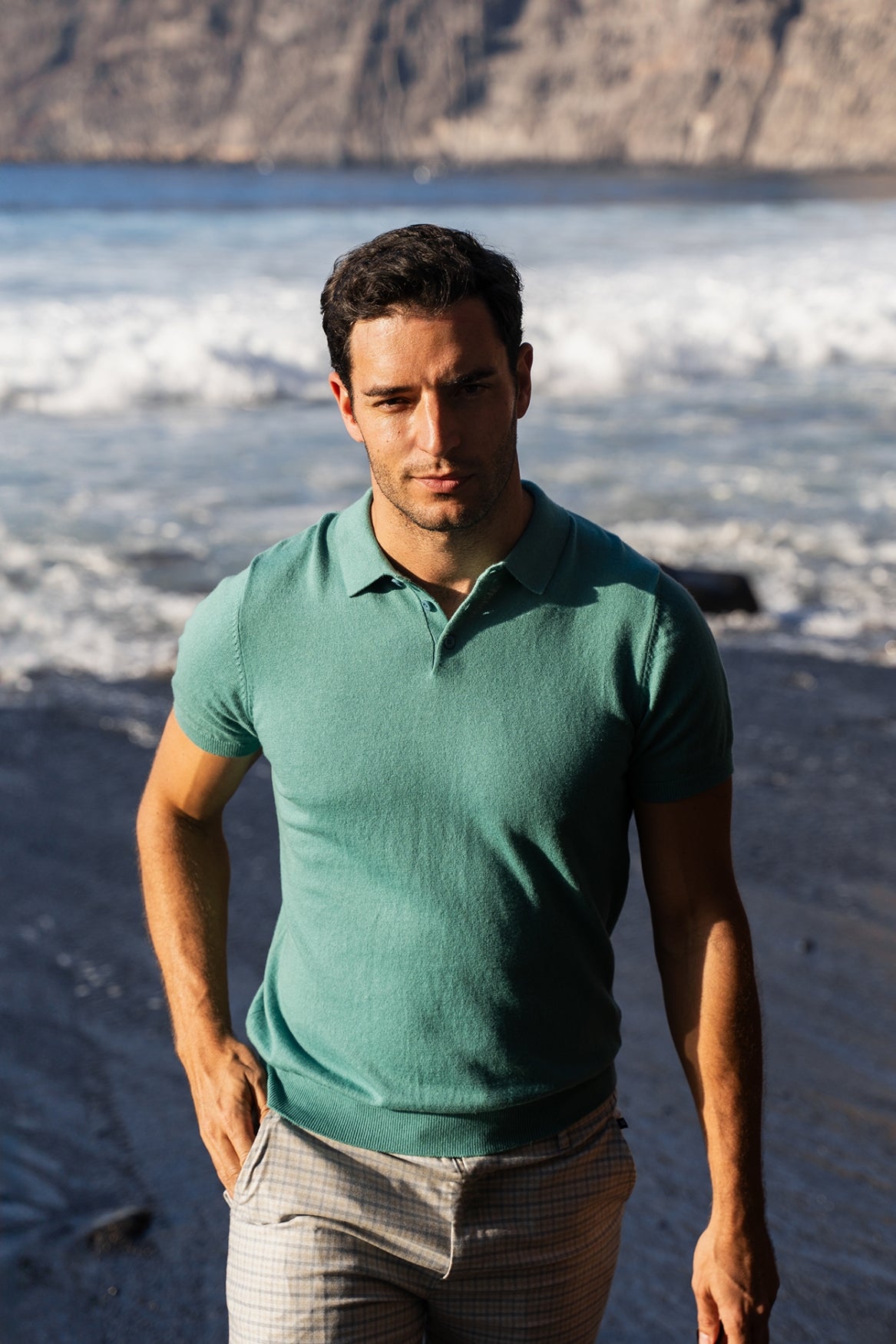 TREVOR | Basic gebreide polo katoen kasjmier | Turquoise
