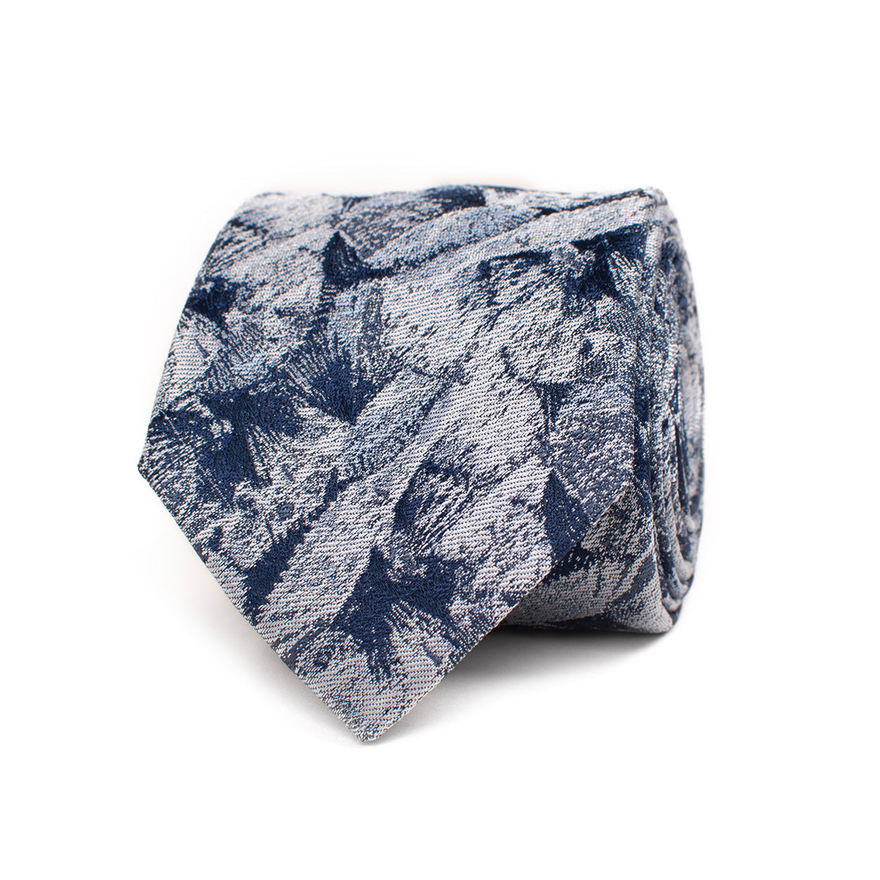 FALO | Silk Tie with Abstract Leaf Motif | Blue