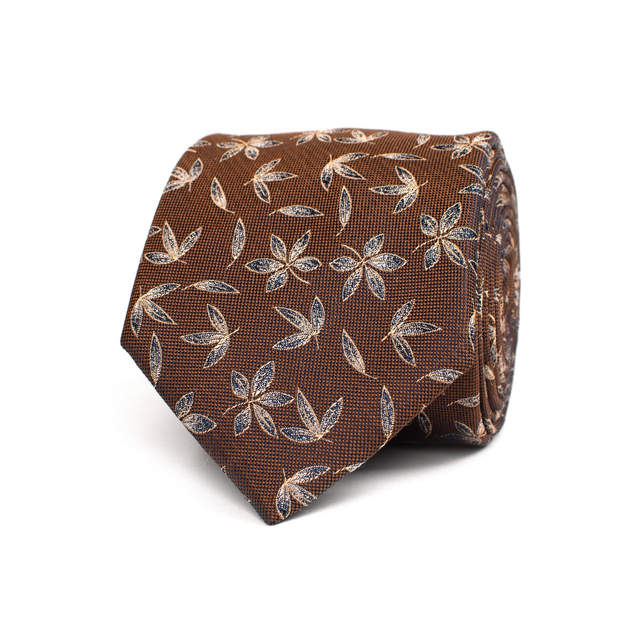 FALONE | Silk Tie with Autumn Leaves | Light brown