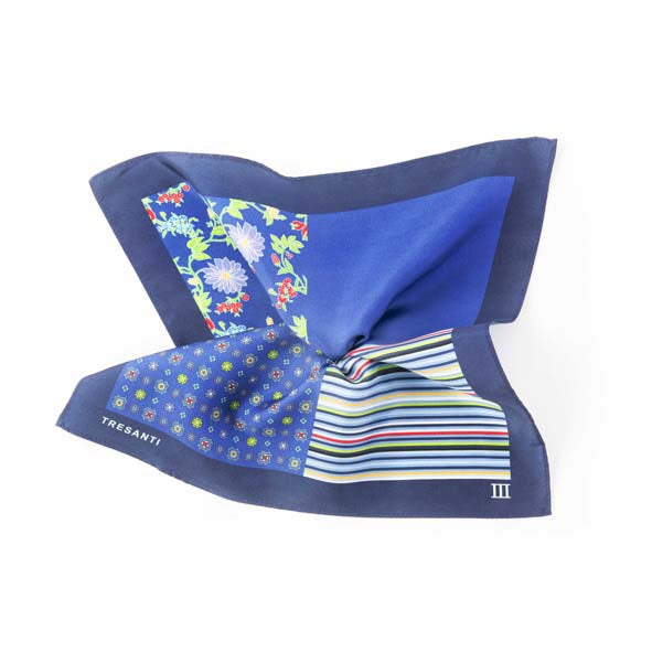 Maak een statement met deze luxueuze YANIS zijden pochet van TRESANTI. Perfect geschikt voor speciale gelegenheden, dit accessoire geeft je trouwpak of outfit een onmiskenbare flair. Met een opvallende navy rand en blauwe prints aan de binnenkant. De YANIS is verkrijgbaar in de kleuren blauw, zwart, donker blauw, rood en licht blauw.